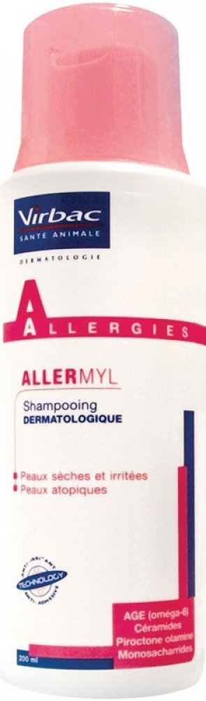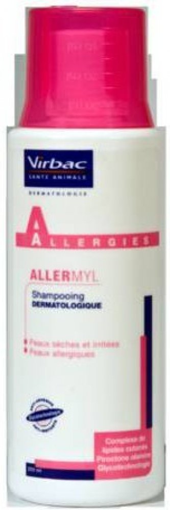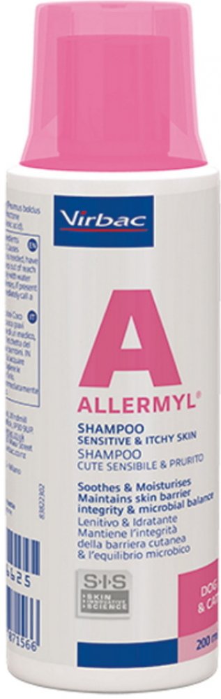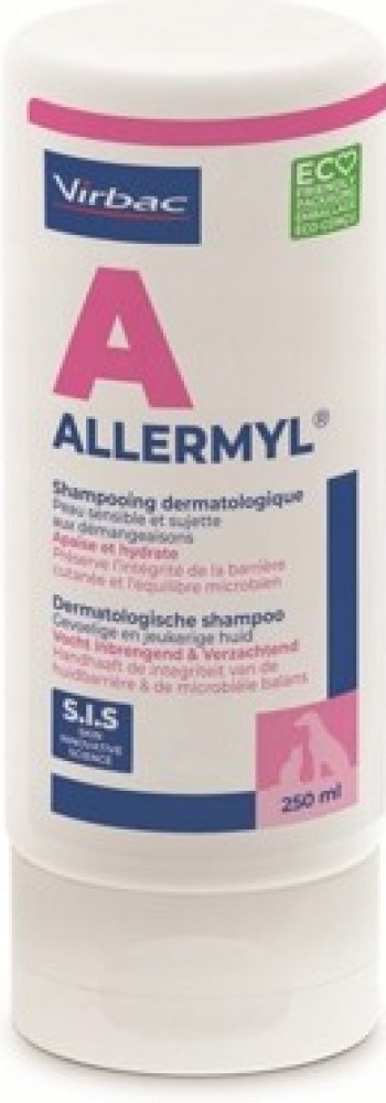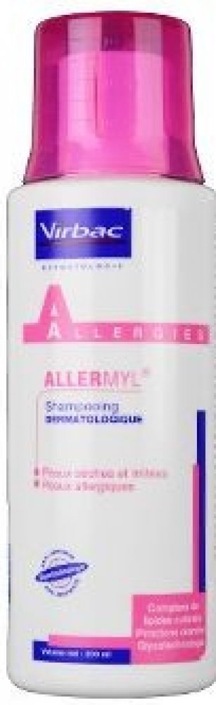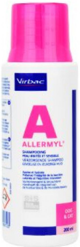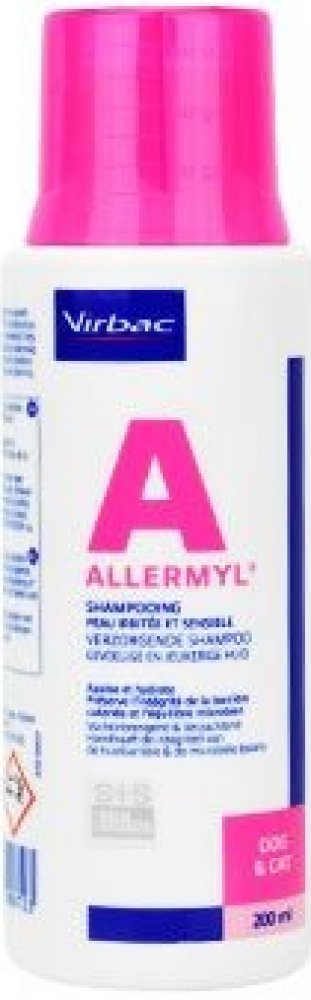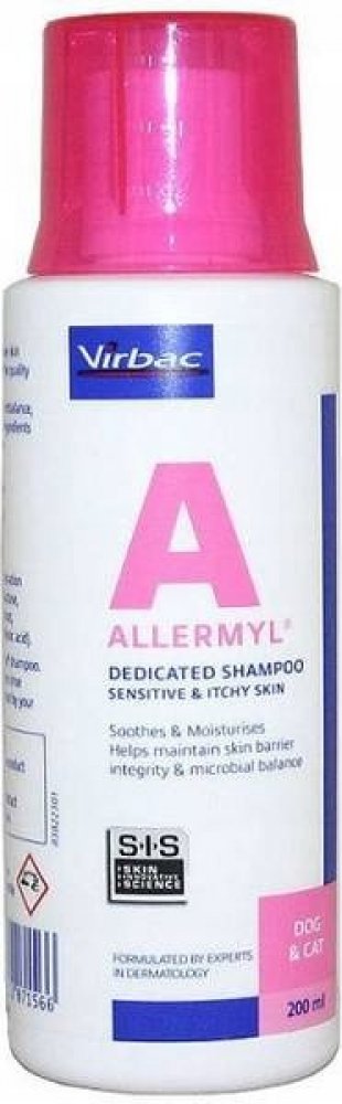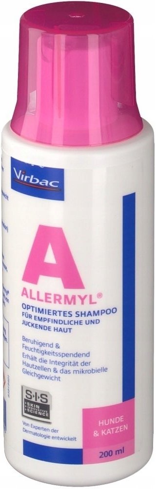 Podání a dávkování:Před použitím dobře protřepejte. Zvlhčete srst a aplikujte tenkou linku Allermylu od krku až ke kořeni ocasu. Krouživými pohyby vmasírujte a opláchněte. Poté opakujte a pěnu ponechte na srsti 5-10 minut, následně opláchněte. Používejte 1-2 týdně nebo dle doporučení Vašeho veterináře.