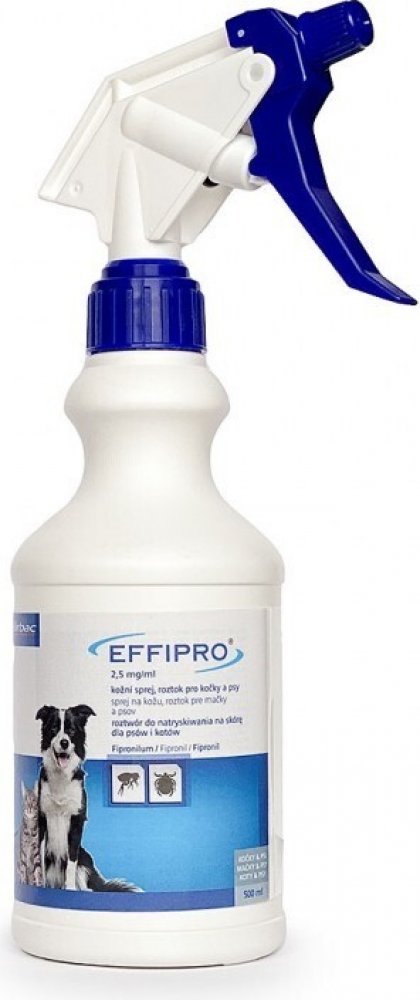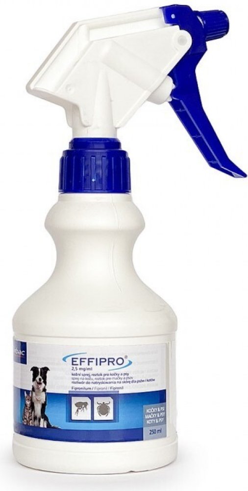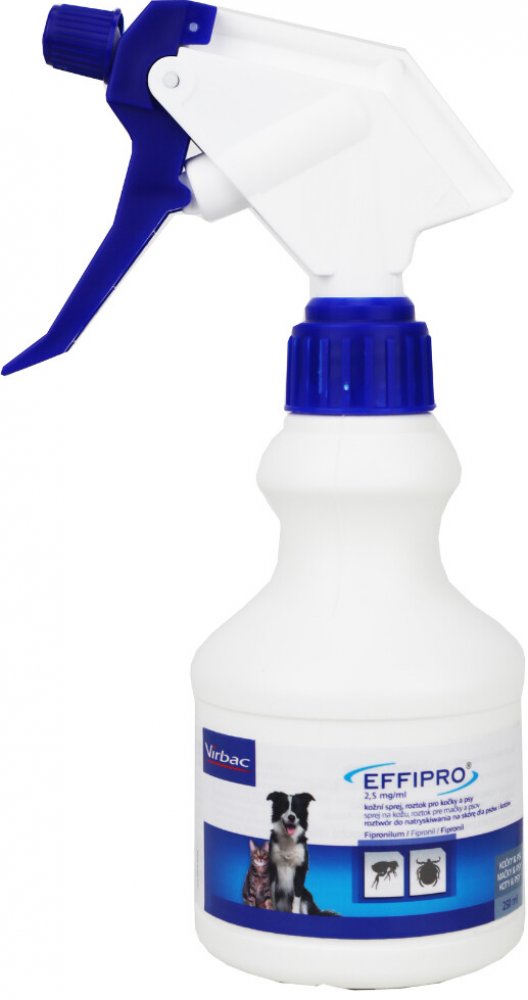 - proti blechám: přípravek má insekticidní účinnost proti novým infestacím dospělci blech, přetrvává až 6 týdnů u koček a až 3 měsíce u psů v závislosti na promořenosti prostředí