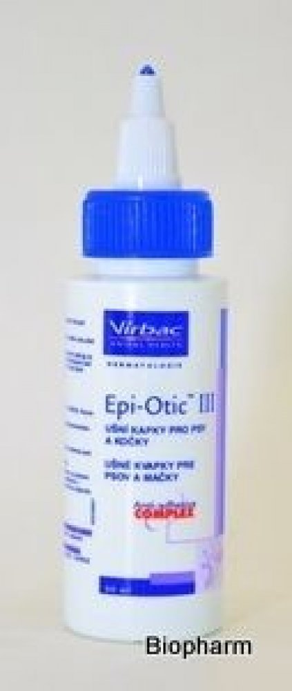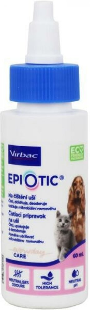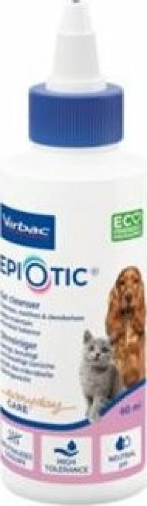 Epiotic značky Virbac je veterinární antiseptický ušní čistič, nedráždivý, vysoušecí a bez alkoholu. Může být používán k běžnému čištění ucha a k usnadnění vyšetření ušního kanálku u psů a koček. Je vhodný pro běžné čištění a pro usnadnění vyšetření ušních kanálků. Ideální přípravek i pro zvířata, která trpí na opakované záněty uší.