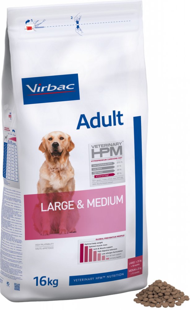 Charakteristika krmiva Virbac Veterinary HPM Adult Large & Medium: