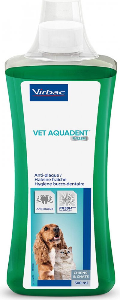 Tento speciálně vyvinutý dentální roztok pro psy a kočky zlepší ústní hygienu vašeho mazlíčka jednoduchým a účinným způsobem. Díky praktickému odměrnému uzávěru stačí nalít 2,5 ml roztoku Virbac Vet Aquadent do 250 ml vody. Jeho svěží chuť váš mazlíček obzvlášť ocení a zároveň mu pomůže bojovat proti zápachu z úst. Technologie FRESH™ představuje inovativní směs přírodních složek, které zabraňují tvorbě zubního plaku a zápachu z úst, díky čemuž je zubní roztok Virbac Vet Aquadent jednoduchým a účinným způsobem, jak podpořit zdraví ústní dutiny vašeho domácího mazlíčka. Charakteristika zubního roztoku Virbac Vet Aquadent pro psy a kočky: zubní roztok pro psy a kočky od 6 měsíců věku nové složení na bázi přírodních složek: bez xylitolu, bez chlorhexidinu, bez parabenů extrakt z granátového jablka: pomáhá redukovat zubní plak a zápach z úst erytritol: snižuje tvorbu zubního plaku, omezuje hromadění bakterií a poskytuje osvěžující účinek inulin: pomáhá snižovat zažívací zápach z úst svěží dech: účinně bojuje proti zápachu z úst snadné dávkování: praktický odměrný uzávěr a ergonomická lahvička snadné použití: jednoduše nasypete do nápoje vašeho domácího mazlíčka, což je jednoduchý a účinný způsob, jak podpořit zdraví ústní dutiny svěží chuť: pro lepší chutnost vyvinuto odborníky na zdraví zvířat: Laboratoře Virbac vytvářejí přípravky pro zdraví zvířat již od roku 1968. Tento rodinný podnik, který je uveden na seznamu, je proslulý svou kvalitou i inovativními recepturami.
