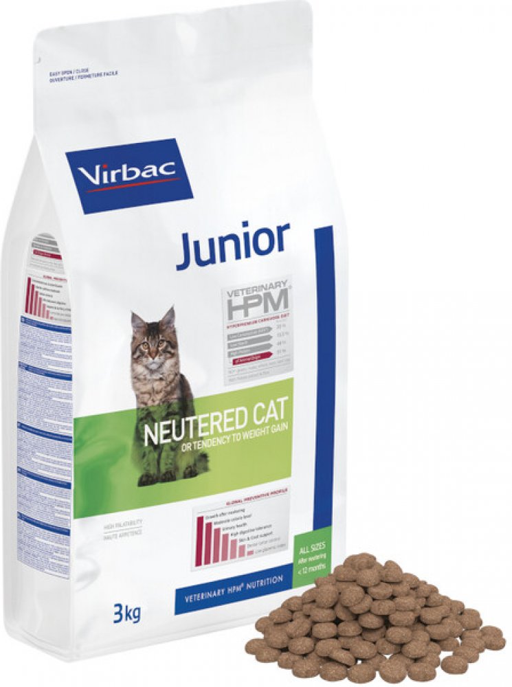 Jakmile je vaše mladá kočka sterilizována nebo vykastrována, změní se její metabolismus a s ním i její nutriční nároky. Virbac Veterinary HPM Junior Neutered Cat je nízkoalergenní suché krmivo se středním obsahem energie, které splňuje potřeby této fáze růstu. Virbac Veterinary HPM Junior Neutered Cat obsahuje velké množství živočišných bílkovin, které jsou důležité pro svalovou hmotu vaší kočky. ...