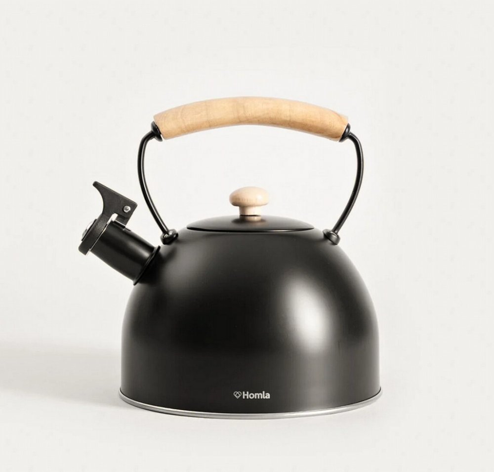 Objem: 2,5 l - Vhodný pro všechny typy sporáků, včetně indukčních - Píšťalka signalizující var vody - Nezahřívající se dřevěná rukojeť - Černá konvice 2,5 l s píšťalkou