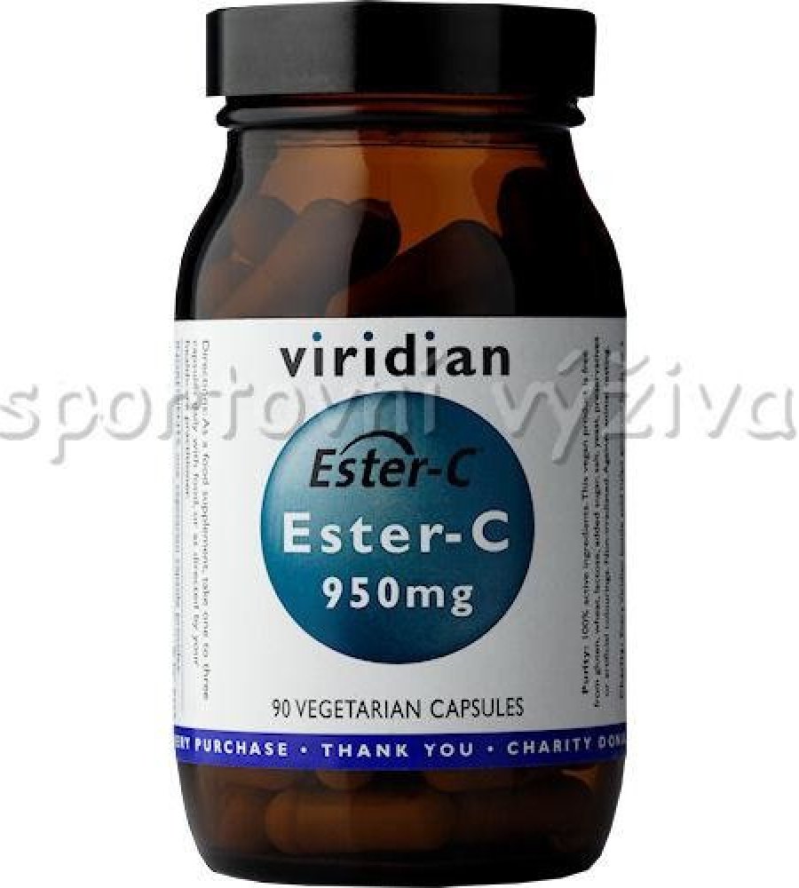 Složení: v 1 kapsli: Komplex Ester-C 950 mg (z toho Vitamín C (kyselina askorbová) 750 mg (938% RHP*), Vápník (askorbát vápenatý) 85,5 mg (10% RHP*), kyselina threonová 9,5 mg, obal kapsle 120 mg (rostlinná celulóza). * % RHP – % referenční hodnoty příjmu vitamínů a minerálních látek.