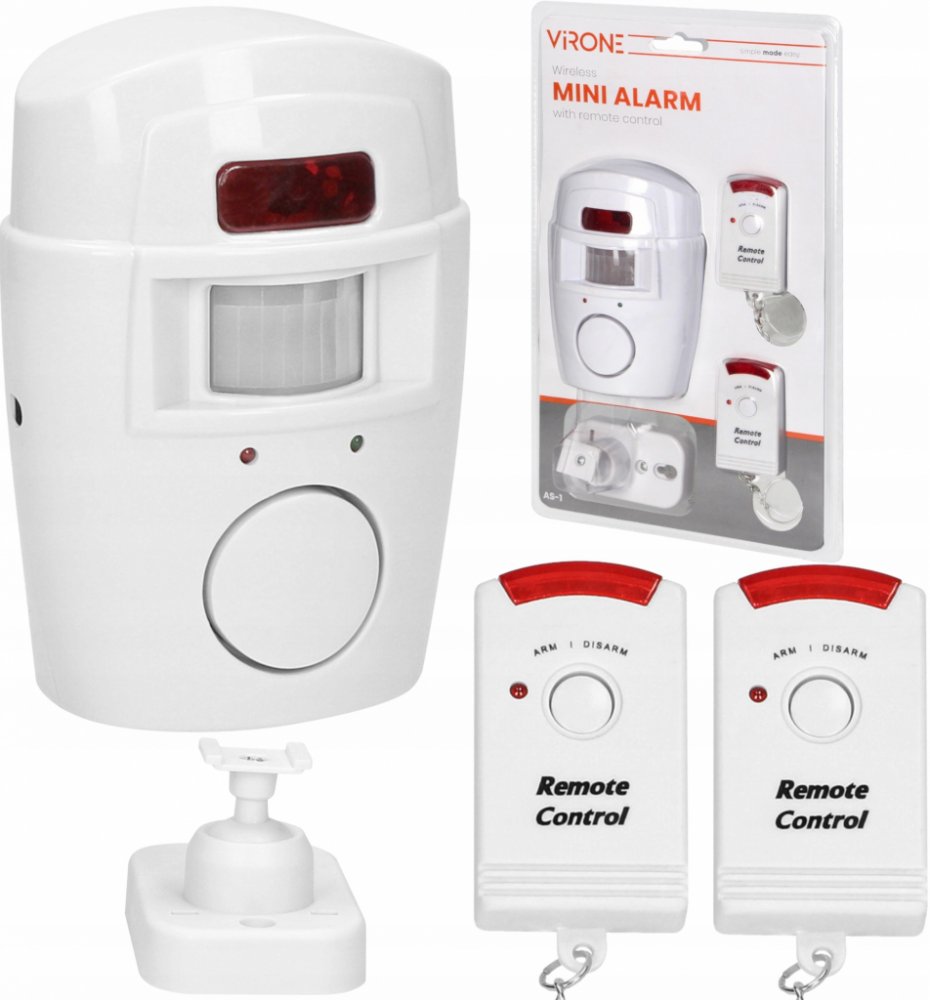 Přenosné poplašné zařízení využívající infračervené záření. Lze jej ovládat dálkovým ovladačem s integrovanou sirénou a detektorem pohybu (2 kusy jsou součástí dodávky). Zařízení detekuje pohyb na vzdálenost 6 metrů. Horizontální pozorovací úhel 110°, hlasitost: ≤90 dB.