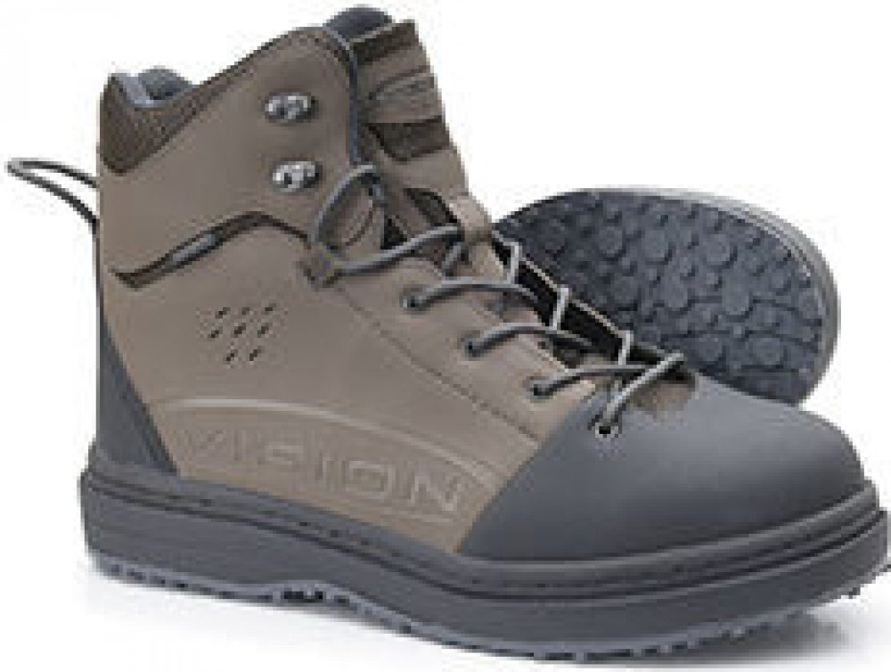 Brodící boty KOSKI jsou silné, ale lehké boty vyrobeny z odolného PVC materiálu. Tento materiál neabsorbuje vodu jako látka, takže rychleji schne. Díky vlastnostem PVC je tato obuv velmi podpůrná a poskytuje dobrou stabilitu a torzní tuhost. Podšívka v oblasti kotníku zajistí maximální pohodlí. Oblasti špiček a paty jsou jsou chráněny proti nárazům. Boty mají velmi odolné nylonové tkaničky. Můžete si je vybavit Vision Tungsten hřeby.