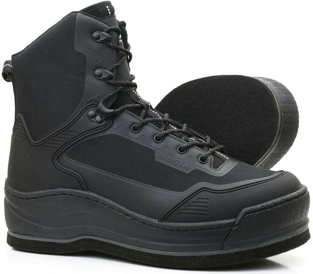 Musta Michelin je moderní, lehká brodící bota se svrškem vyztuženým TPU z balistického polyesteru. Tisk TPU v určených oblastech nabízí dobrou odolnost proti oděru, aniž by bota byla příliš tuhá a těžká. Pro větší odolnost mají švy své vlastní drážky a mezipodešev EVA a přední špička podešve Michelin jsou všity na horní část boty.