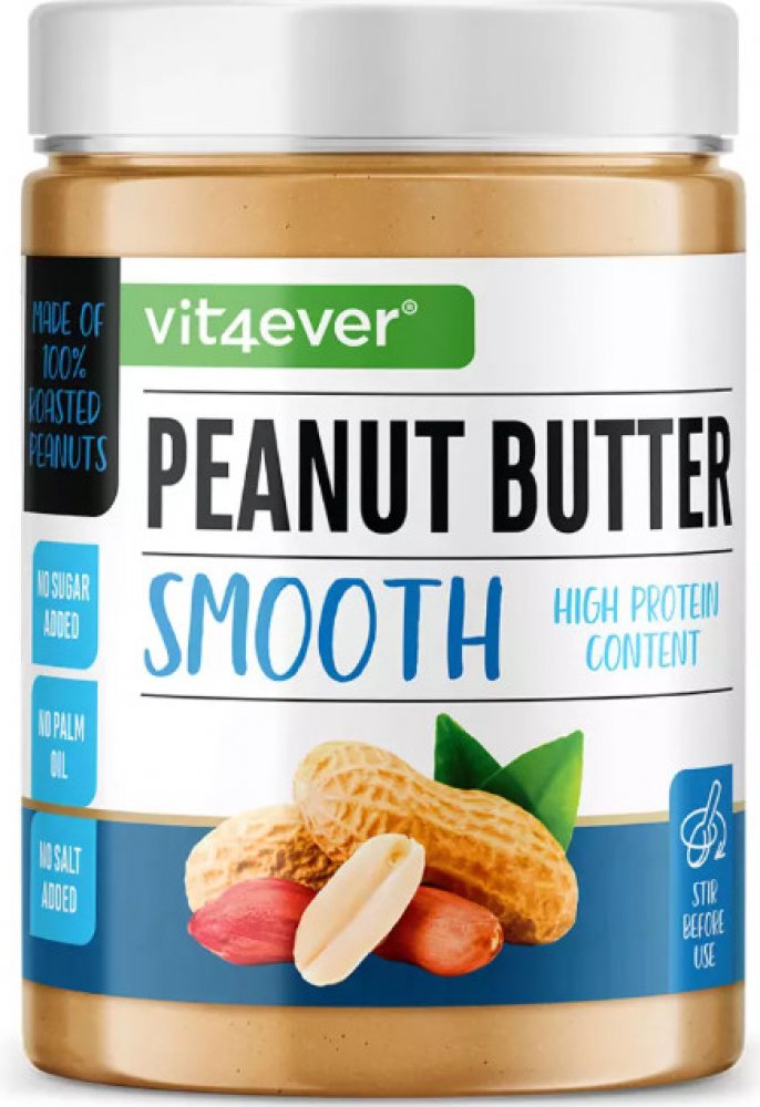 Arašídové máslo Vit4ever (Smooth) je přírodní produkt vyrobený ze 100% pražených arašídů . Neobsahuje zbytečný cukr, sůl ani umělá aditiva a je také velmi bohatým a přirozeným zdrojem vysoce kvalitních bílkovin a nenasycených tuků. Je také bohatý na minerály, jako je draslík a hořčík, stejně jako vitamín E a vlákninu .