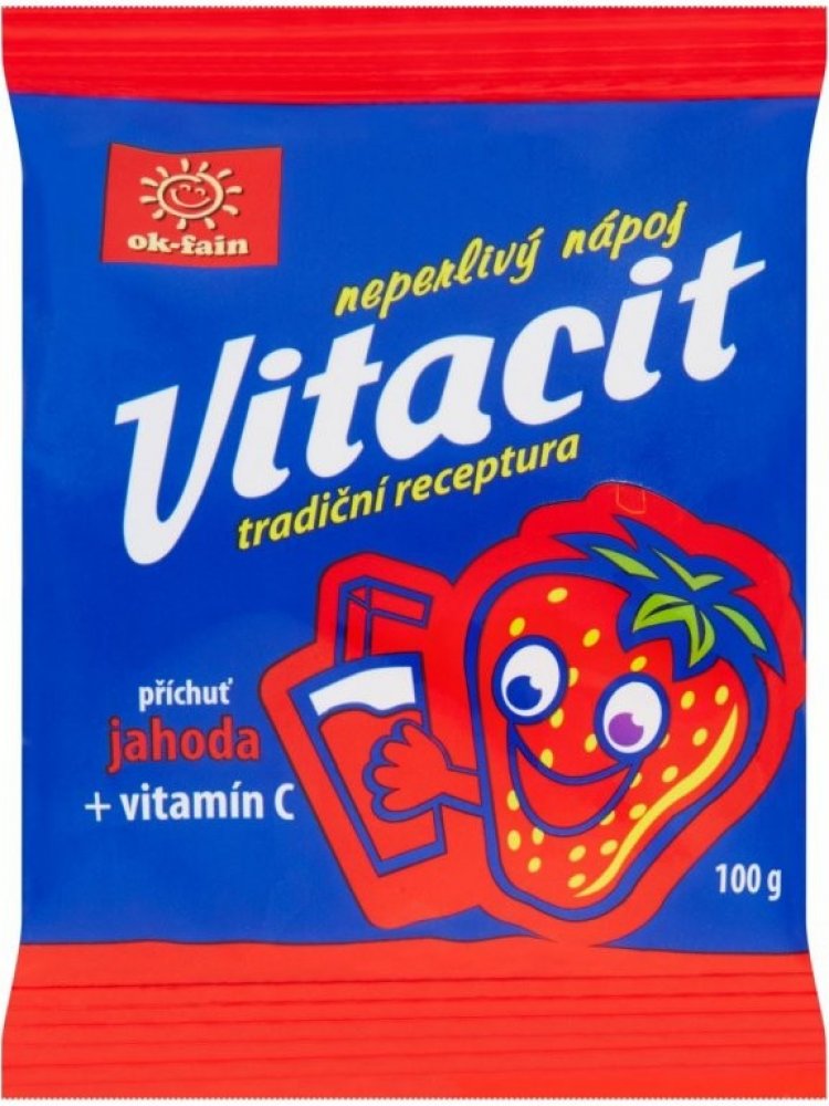 Neperlivý nápoj v prášku s příchutí jahody.O VÝROBCIPracujeme na celém území ČR. Kromě dodávek produktů ve značkách našich dodavatelů dodáváme i zboží v privátních značkách našich odběratelů a v neposlední řadě i našich značkách (VITACIT, OK-FAIN, WISSA). S našimi dodavateli spolupracujeme i při vývoji nových výrobků a zajišťujeme marketingovou podporu výrobků. Exkluzivně nabízíme výrobky s licenč...