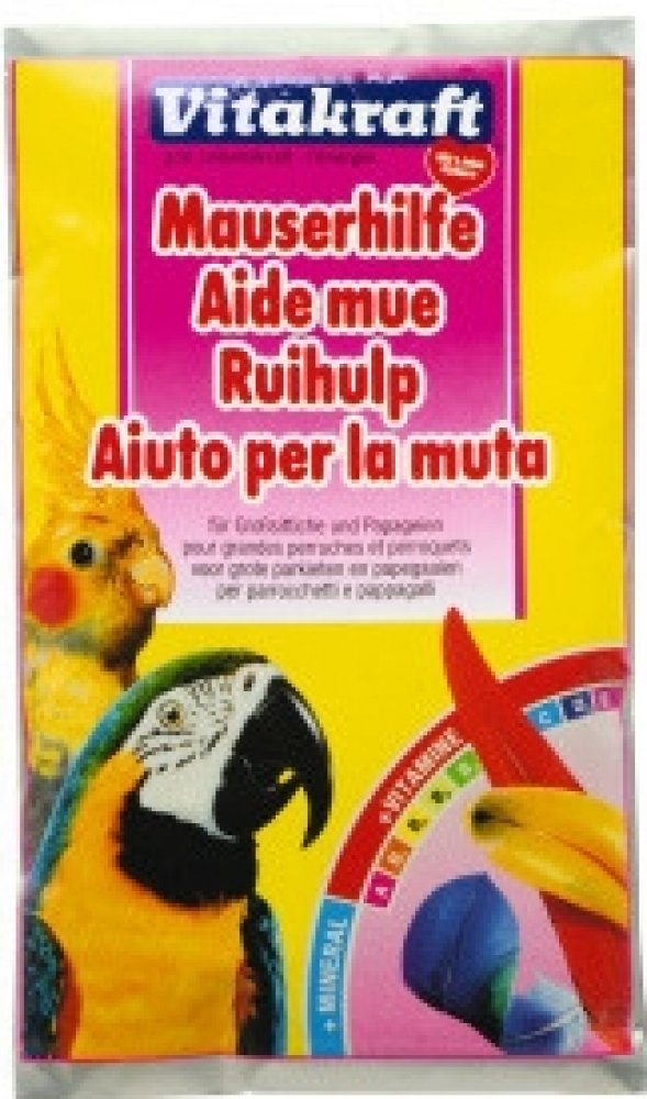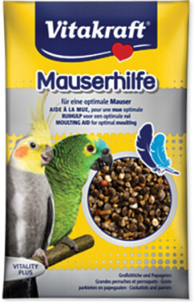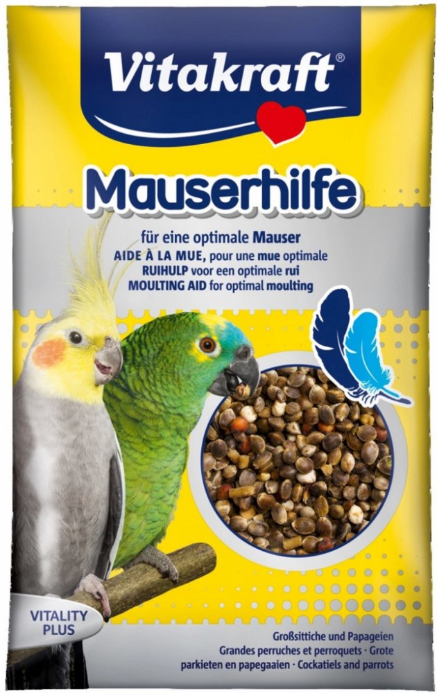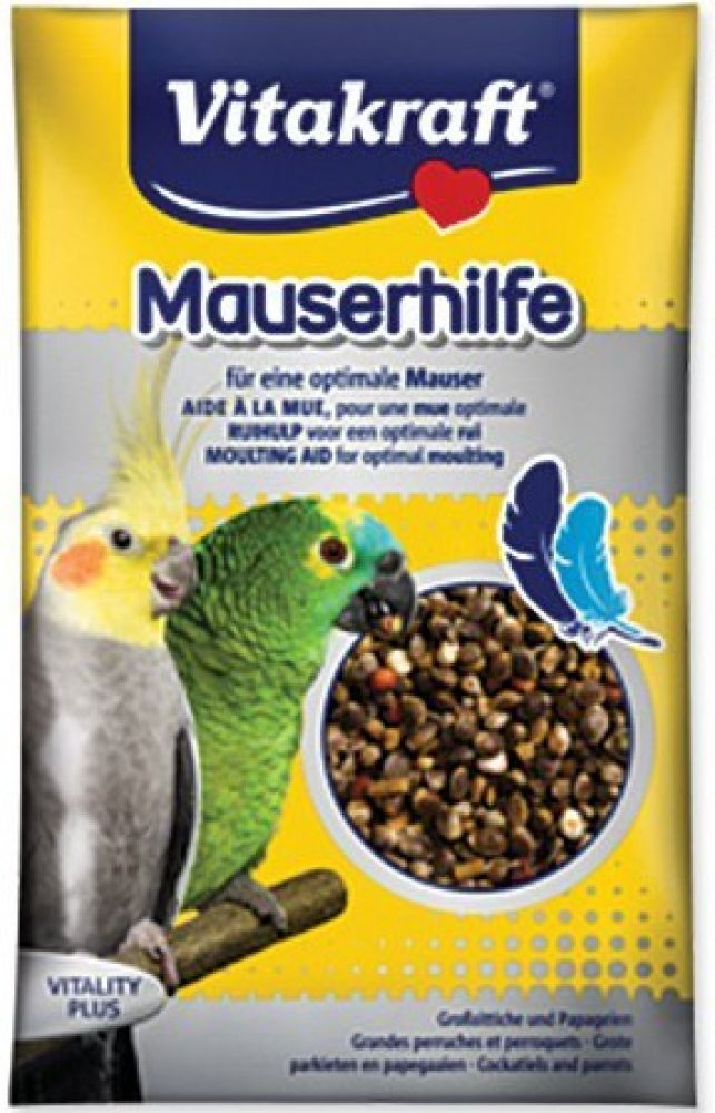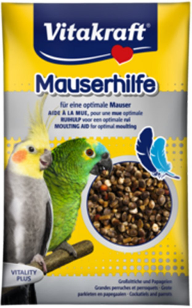 V ptačím obydlí by nikdy nemělo chybět správné krmení pro optimální přepeření, a proto je tu výživné krmení VITAKR Parrot Mauserhilfe, které je skvělým doplňkovým krmivem pro velké papoušky.