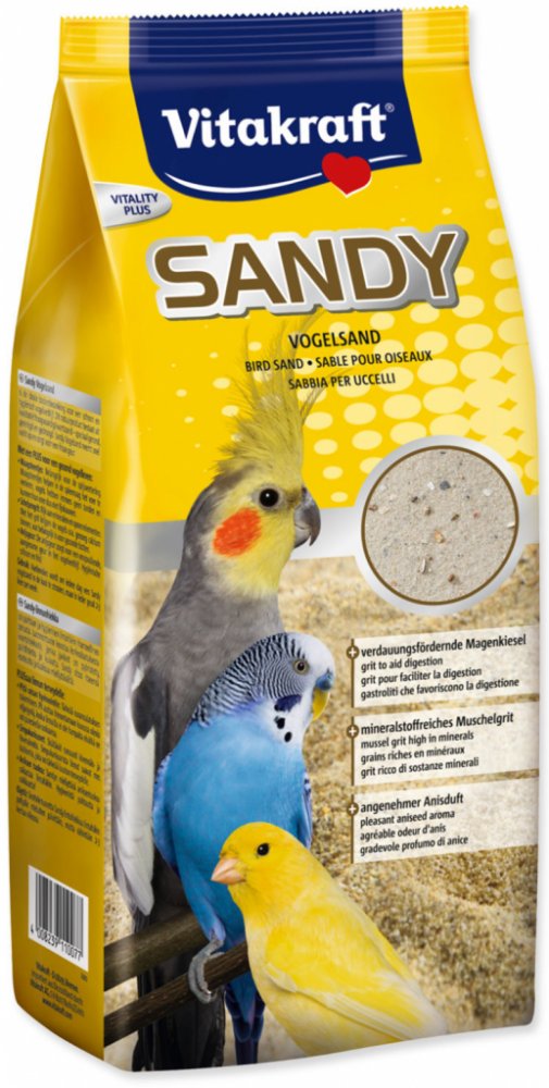 Písek pro ptáky Sandy je ideálním základem pro čisté a hygienické ptačí obydlí. Přírodní produkt se skládá z vysoce kvalitního křemenného písku - speciálně zaobleného, čištěného a sušeného. Jako podestýlka vhodná pro papoušky váže písek Sandy spolehlivě vlhkost a zajišťuje příjemnou svěží vůni.
