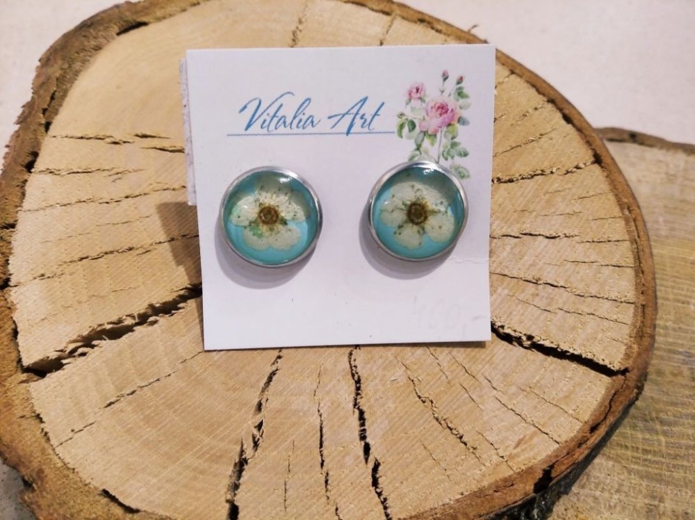 Ručně vyrobené náušnice ze sušeného tavolníku.
