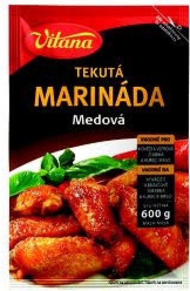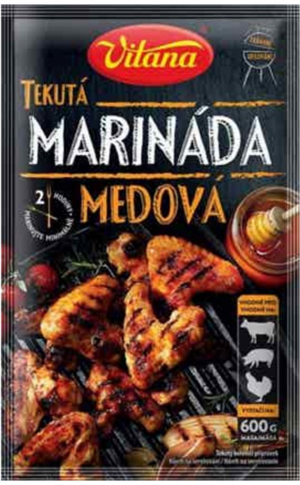 Složení: pitná voda, cukr, glukóza, med 15 %, jedlá sů 11,1%l, rajčatový protlak 11%, vinný ocet, sójová omáčka (sójový hydrolyzát, víno, švestky, jablka, barvivo E150d, sušený rajčatový protlak, látky zvýrazňující chuť a vůni E 621, E627, E631, kvasnicový výtažek, směs koření, česnekový extrakt), aromata, chilli mleté, směs koření, konzervanty (sorban draselný, benzoan sodný), rozmarýn mletý 0,6%, zahušťovadlo xanthan.