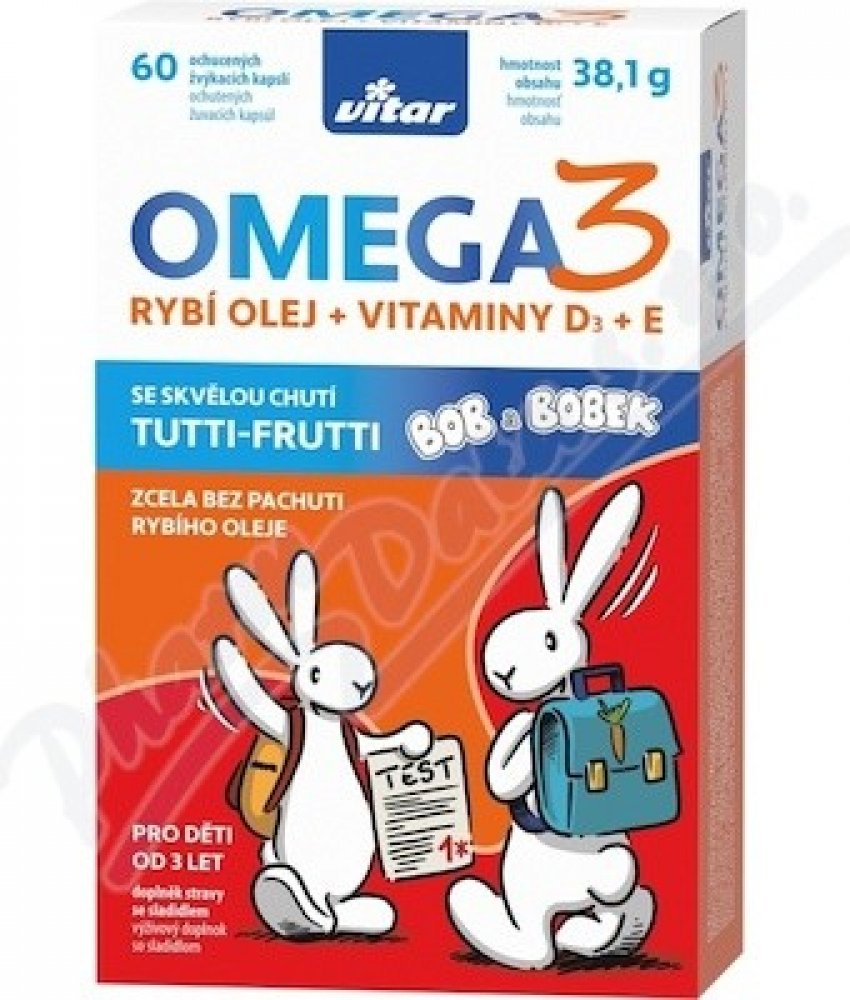 Vitar Kids Bob a Bobek Omega 3 rybí olej + vitaminy D3 + E 60 kapslí