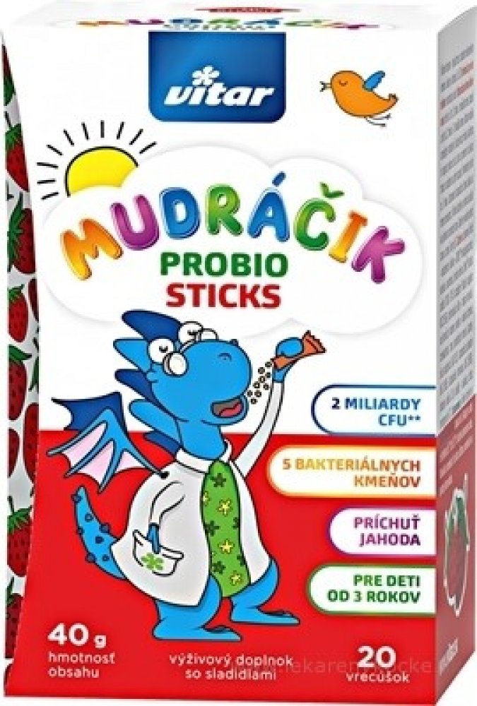 Vitar Mudráček Probio Sticks probiotika pro děti, jahodová příchuť 20 sáčků