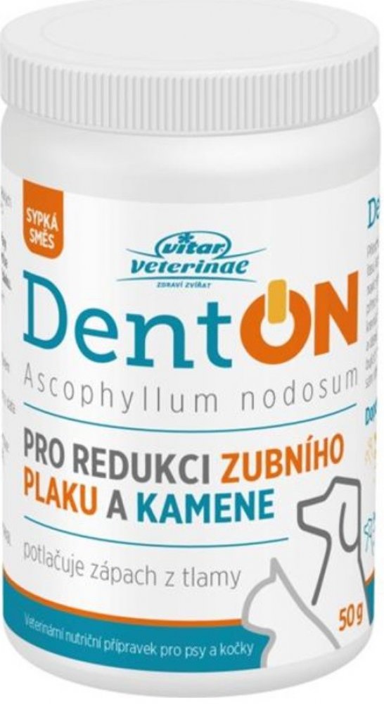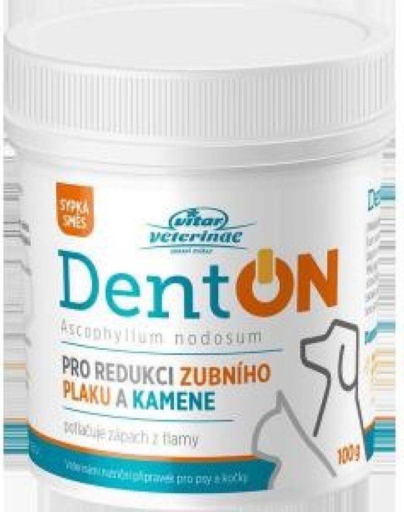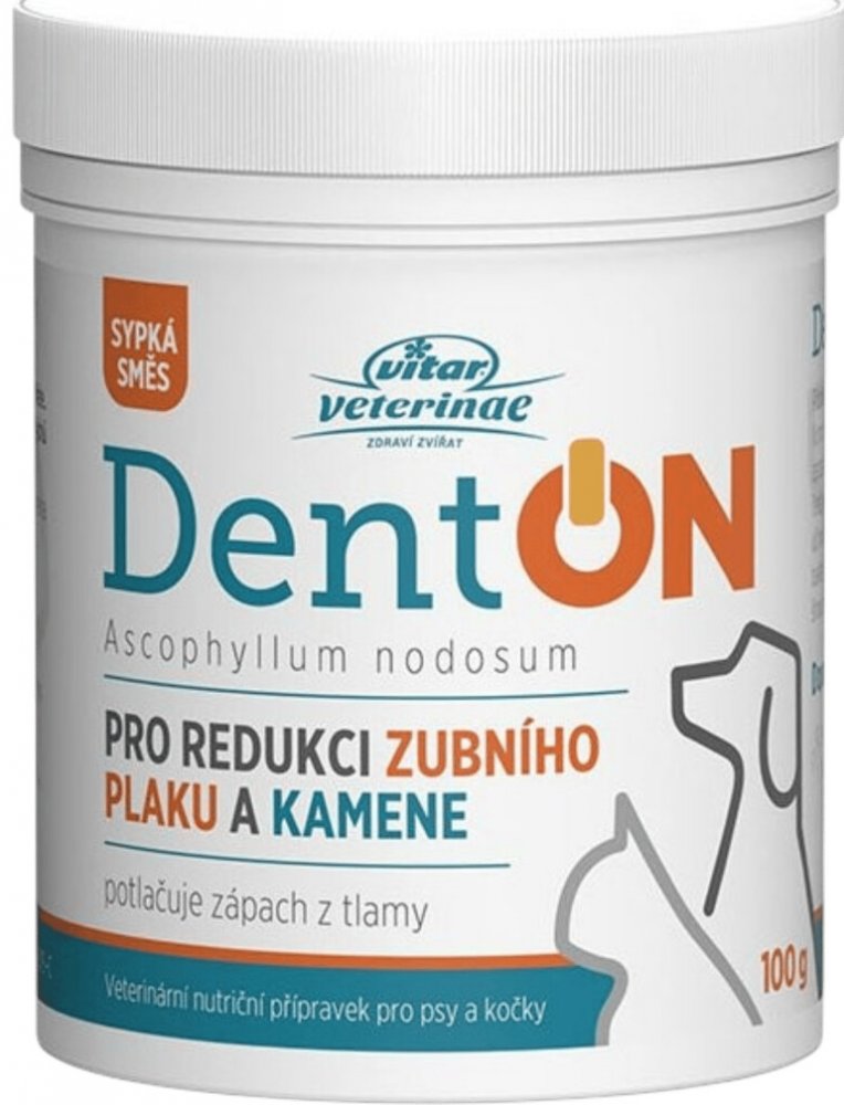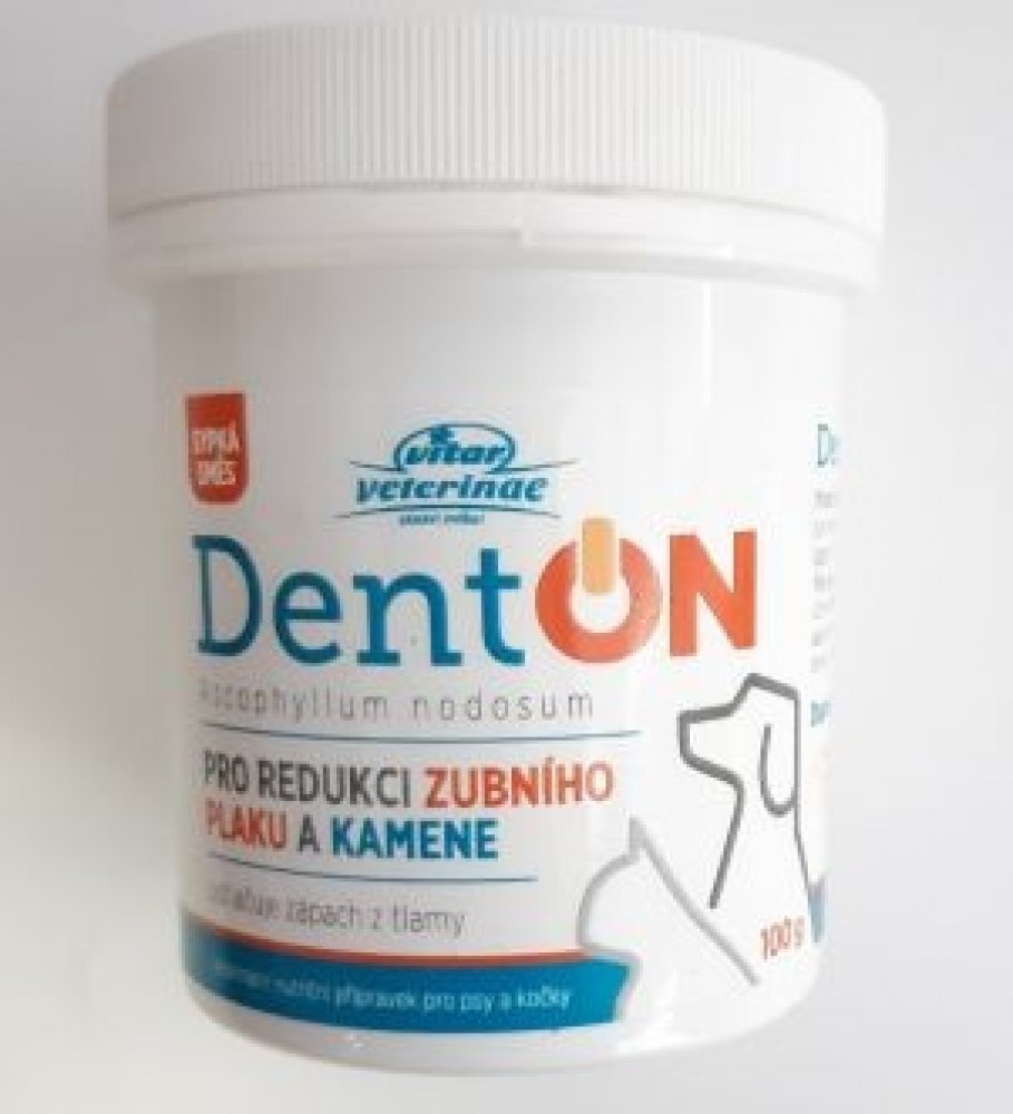 Přírodní přípravek VITAR Veterinae DentON obsahuje mořskou řasu Ascophyllum nodosum pro redukci zubního plaku a kamene, navíc výrazně snižuje zápach z tlamy u psů a koček.
