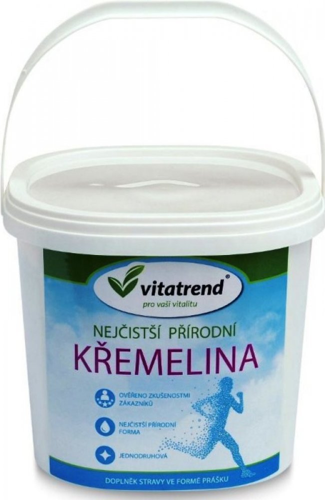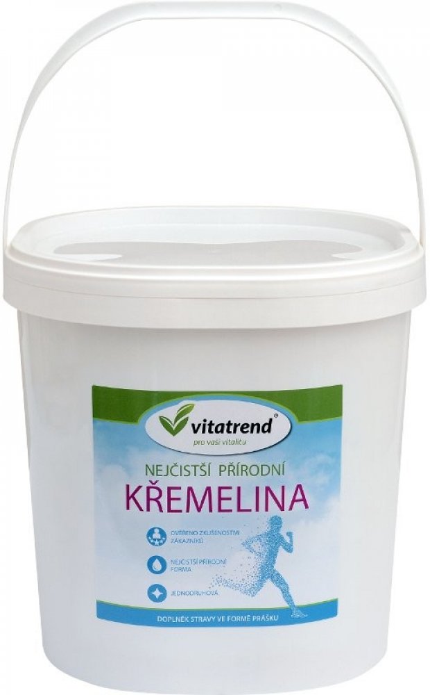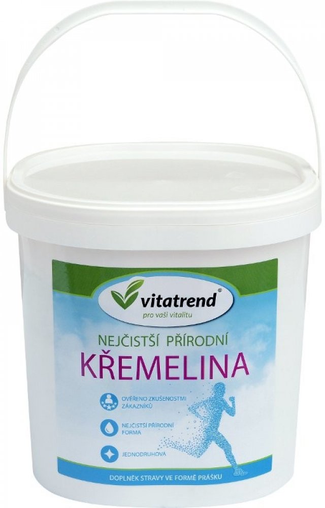 Vitatrend Křemelina je 100% přírodní potravinářská křemelina vhodná jako doplněk stravy. Obsahuje organický, snadno vstřebatelný křemík a stopové minerály, které podporují zdravý stav pokožky, nehtů a vlasů. Jemný sypký prášek se snadno rozmíchá ve vodě nebo jiné tekutině. Vhodné pro vegetariány i vegany. Velké praktické balení v plastovém kyblíku umožňuje pohodlné skladování i dlouhodobé používání.