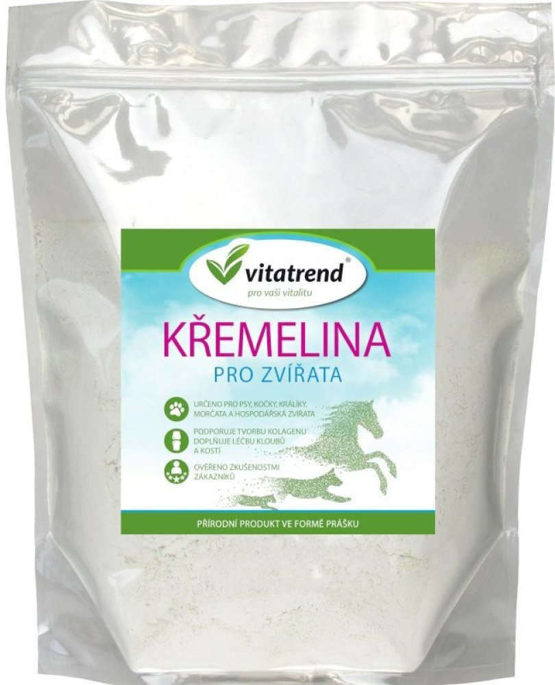 Křemelina (diatomit) od značky Vitatrend je 100% přírodní doplněk krmiva pro psy, kočky, koně, drůbež a další zvířata. Obsahuje vysoký podíl oxidu křemičitého, který přispívá k očistě trávicího traktu, lepšímu využití živin a zlepšení kvality srsti, kůže i paznehtů.