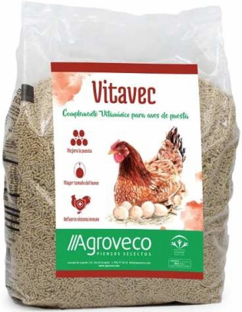 Vitavec je revoluční vitamínový doplněk krmiva pro nosnice, který podporuje vyšší snášku, lepší kvalitu vajec a celkové zdraví slepic.Hlavní přínosyVětší a pevnější vejceSilnější imunitní systémLepší kvalita peří a celková vitalitaPro koho je určenMladé nosnice – urychluje nástup snáškyStarší nosnice – prodlužuje snáškové obdobíSlepice krmené převážně obilovinami – doplňuje potřebné živinyCo obsahujeKomplex vitamínů (A, D3, E, B-komplex, K3, niacin, kyselina listová a další)Vápník a fosfor pro pevné skořápky a silné kostiEsenciální aminokyseliny (lysin a methionin)Přírodní antioxidanty pro ochranu buněkZpůsob podáváníVitavec by měl být slepicím volně k dispozici – instinktivně si upraví příjem podle svých potřeb.SloženíPšenice, ječmen, odslupkovaná sójová mouka*, pšeničné otruby, uhličitan vápenatý, monokalciumfosfát, palmový olej, chlorid sodný*Vyrobeno z geneticky modifikovaných sójových bobůAnalytické složkyHrubý protein: 15,5 %Hrubé tuky: 4,3 %Hrubá vláknina: 3,6 %Hrubý popel: 22,4 %Vápník: 6,15 %Fosfor: 1,30 %Sodík: 0,25 %Lysin: 0,74 %Methionin: 1,50 %Přidané látky (na kg)Vitamíny:Vitamin A – 28 800 UIVitamin D3 – 9 000 UIVitamin E – 18 mgVitamin B1 – 1,79 mgVitamin B2 – 12,59 mgVitamin B6 – 1,79 mgVitamin B12 – 36 mcgVitamin K3 – 7,20 mgKyselina listová – 0,91 mgNiacin – 72,0 mgKyselina pantothenová – 25,12 mgBetain anhydrát – 660 mgStopové prvky:Železo (uhličitan železnatý) – 200 mgJód (jodid draselný) – 8 mgMěď (síran měďnatý pentahydrát) – 20 mgMangan (oxid manganatý) – 260 mgZinek (oxid zinečnatý) – 200 mgSelen (selenitan sodný) – 0,80 mgAntioxidanty a konzervanty:BHT (E-321) – 400 mgKyselina citronová (E-330) – 1 380 mgCitran sodný (E-331) – 40 mgAminokyseliny:DL-Methionin 99 (3c301) – 1,2905 %Pojivo:Sepiolit (E-562) – 0,1600 %
