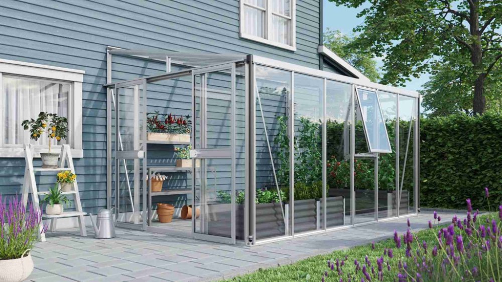 Skleník je určen k montáži ke zdi – zadní stěna není součástí konstrukce.