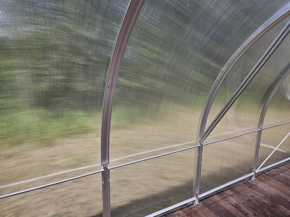 - vnitřní podpěry obloukové konstrukce výrazně zvyšující odolnost skleníku proti zatížení sněhem