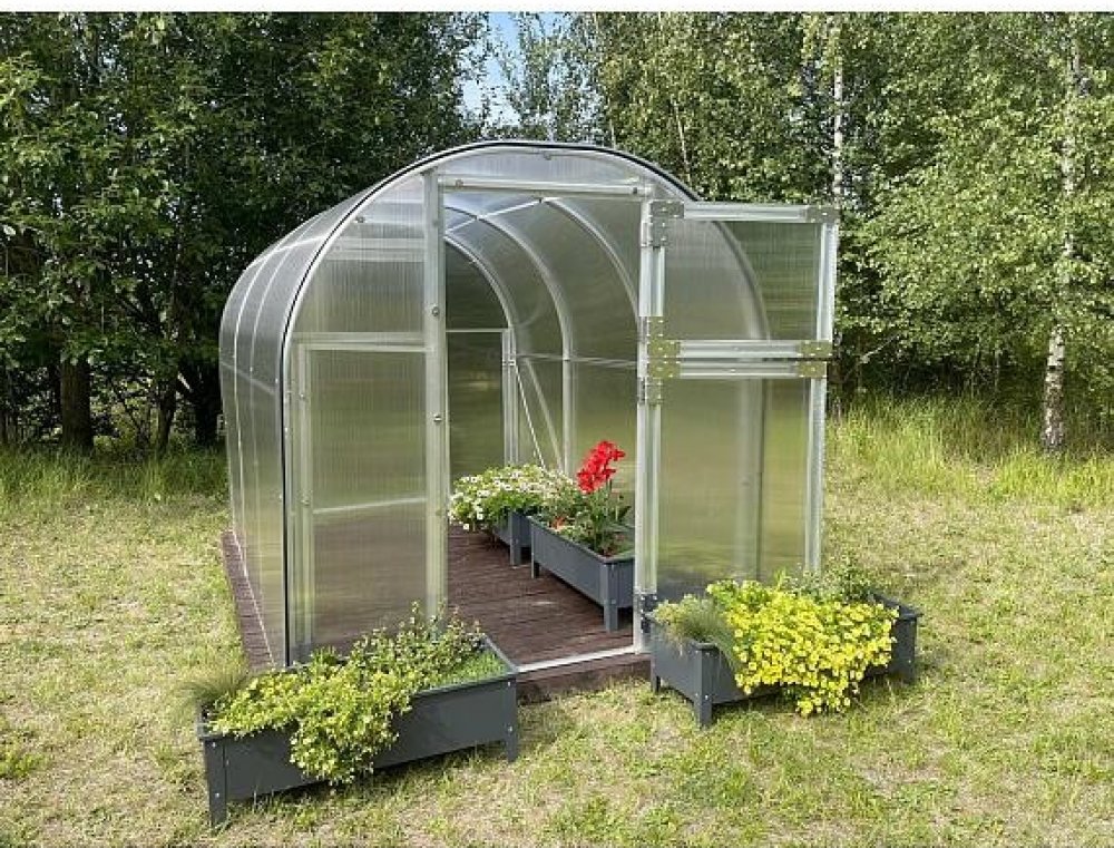 Vitavia 6 m2 2 m 3 m 2 m 1.83 m 54 kg obloukové hliníkové stříbrné jednokřídlé bez základny polykarbonát 6 mm