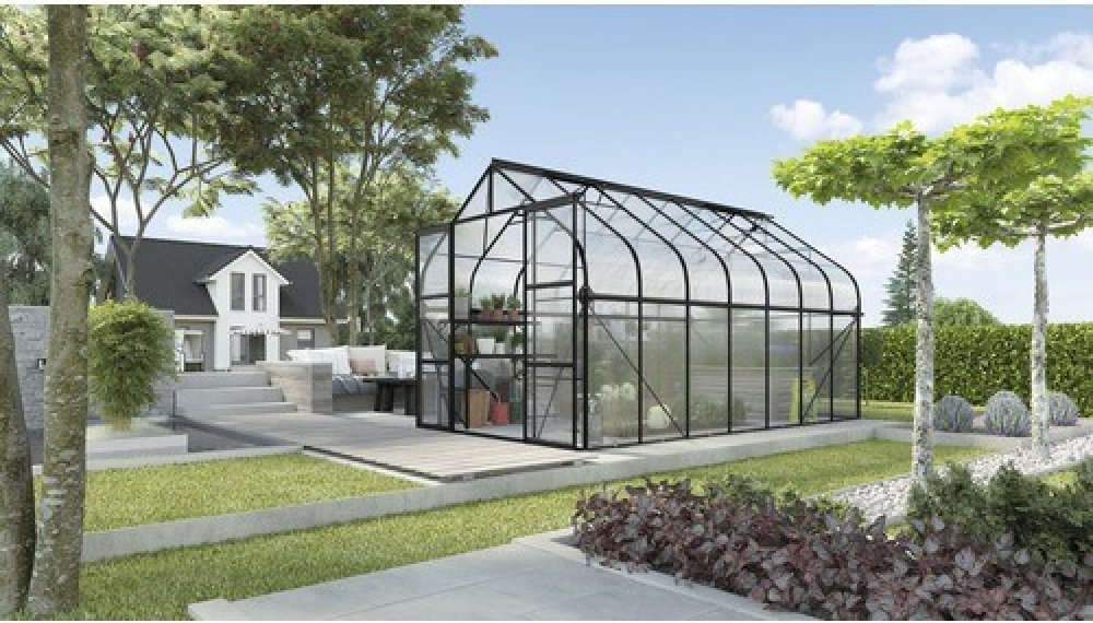 Skleníkem Vitavia Diana prostupuje nádech orientálních pohádek, čímž představuje úžasné místo nejen pro vaše rostliny. Tento elegantní hliníkový skleník s krásným tvarem se stane ozdobou každé zahrady. Model skleníku Vitavia Diana dokonale zapadne do reliéfu krajiny a postará se celoročně o čerstvé bylinky, zdravou zeleninu a kvetoucí květiny. Je k dispozici v pěti různých velikostech se základovou plochou 5 až 11,5 m² a dvou barevných provedeních: eloxovaný hliník nebo smaragdově zelená prášková úprava. Díky snadno ovladatelným dvojitým posuvným dveřím o šířce 122 cm a výšce 200 cm do něj lze pohodlne vcházet. Všechny velikosti jsou k dispozici s výplněmi z křišťálově čirého bezpečnostního skla (ESG) o tloušťce cca 3 mm nebo dutinkových desek o tloušťce 4 mm. Ty vykazují díky uzavřeným hranám vyšší stabilitu na rozdíl od často používané varianty s otevřenými ukončovacími hranami. Na rozdíl od skla mají lepší izolační vlastnosti a chrání rostliny před takzvaným „efektem spálení přes sklo“, který může rostliny poškodit při vystavení přímému slunečnímu záření. Optimální větrání zajišťují střešní okna, která jsou součástí dodávky. Model od modelu se jedná o jeden až čtyři kusy. Součástí sériového vybavení jsou také okapové žlaby. Pro montáž skleníku do úplné roviny a do pravého úhlu je doporučeno použití základového rámu z pozinkovaného a nabarveného ocelového plechu.