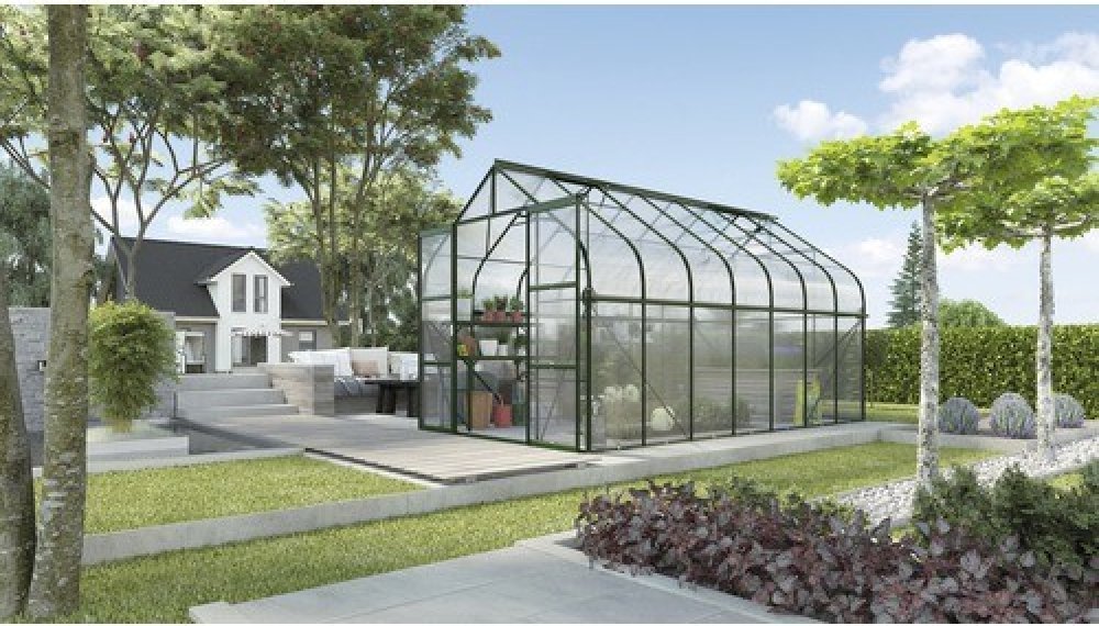 Skleníkem Vitavia Diana prostupuje nádech orientálních pohádek, čímž představuje úžasné místo nejen pro vaše rostliny. Tento elegantní hliníkový skleník s krásným tvarem se stane ozdobou každé zahrady. Model skleníku Vitavia Diana dokonale zapadne do reliéfu krajiny a postará se celoročně o čerstvé bylinky, zdravou zeleninu a kvetoucí květiny. Je k dispozici v pěti různých velikostech se základovou plochou 5 až 11,5 m² a dvou barevných provedeních: eloxovaný hliník nebo smaragdově zelená prášková úprava. Díky snadno ovladatelným dvojitým posuvným dveřím o šířce 122 cm a výšce 200 cm do něj lze pohodlne vcházet. Všechny velikosti jsou k dispozici s výplněmi z křišťálově čirého bezpečnostního skla (ESG) o tloušťce cca 3 mm nebo dutinkových desek o tloušťce 4 mm. Ty vykazují díky uzavřeným hranám vyšší stabilitu na rozdíl od často používané varianty s otevřenými ukončovacími hranami. Na rozdíl od skla mají lepší izolační vlastnosti a chrání rostliny před takzvaným „efektem spálení přes sklo“, který může rostliny poškodit při vystavení přímému slunečnímu záření. Optimální větrání zajišťují střešní okna, která jsou součástí dodávky. Model od modelu se jedná o jeden až čtyři kusy. Součástí sériového vybavení jsou také okapové žlaby. Pro montáž skleníku do úplné roviny a do pravého úhlu je doporučeno použití základového rámu z pozinkovaného a nabarveného ocelového plechu.