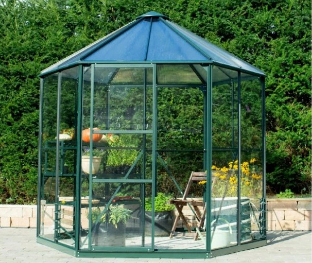 Pavilon HERA 4500 je zařazený do kategorie PREMIUM - skleník je vyrobený značkovým výrobcem z Velké Británie. Pavilon je vyrobený z eloxovaných hliníkových profilů. Prosklení je z klasického čirého bezpečnostního skla síly 3 mm (stěny) a z nerozbitného komůrkového polykarbonátu 6 mm (střecha). Čiré sklo zajišťuje výbornou světelnou propustnost, takže do skleníku je krásně vidět ze všech stran a můžete se kochat barvami pěstovaných rostlin. Kalená verze skla navíc zajišťuje jeho naprostou bezpečnost - v případě rozbití se skleněná výplň roztříští na tisíce malých kousků, což zabrání případnému vážnému zranění. To je velmi důležitá vlastnost skleníku, kterou ocení především rodiče malých dětí pobíhajících po zahradě.