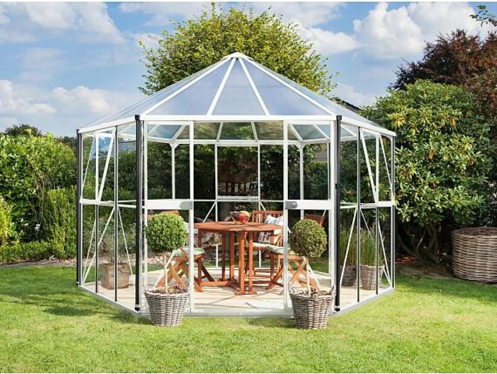 Pavilon HERA 9000 je zařazený do kategorie PREMIUM - pavilon je vyrobený značkovým výrobcem z Velké Británie. Pavilon je vyrobený z eloxovaných hliníkových profilů. Prosklení je z klasického čirého bezpečnostního skla síly 3 mm (stěny) a z nerozbitného komůrkového polykarbonátu 6 mm (střecha). Čiré sklo zajišťuje výbornou světelnou propustnost, takže do s...