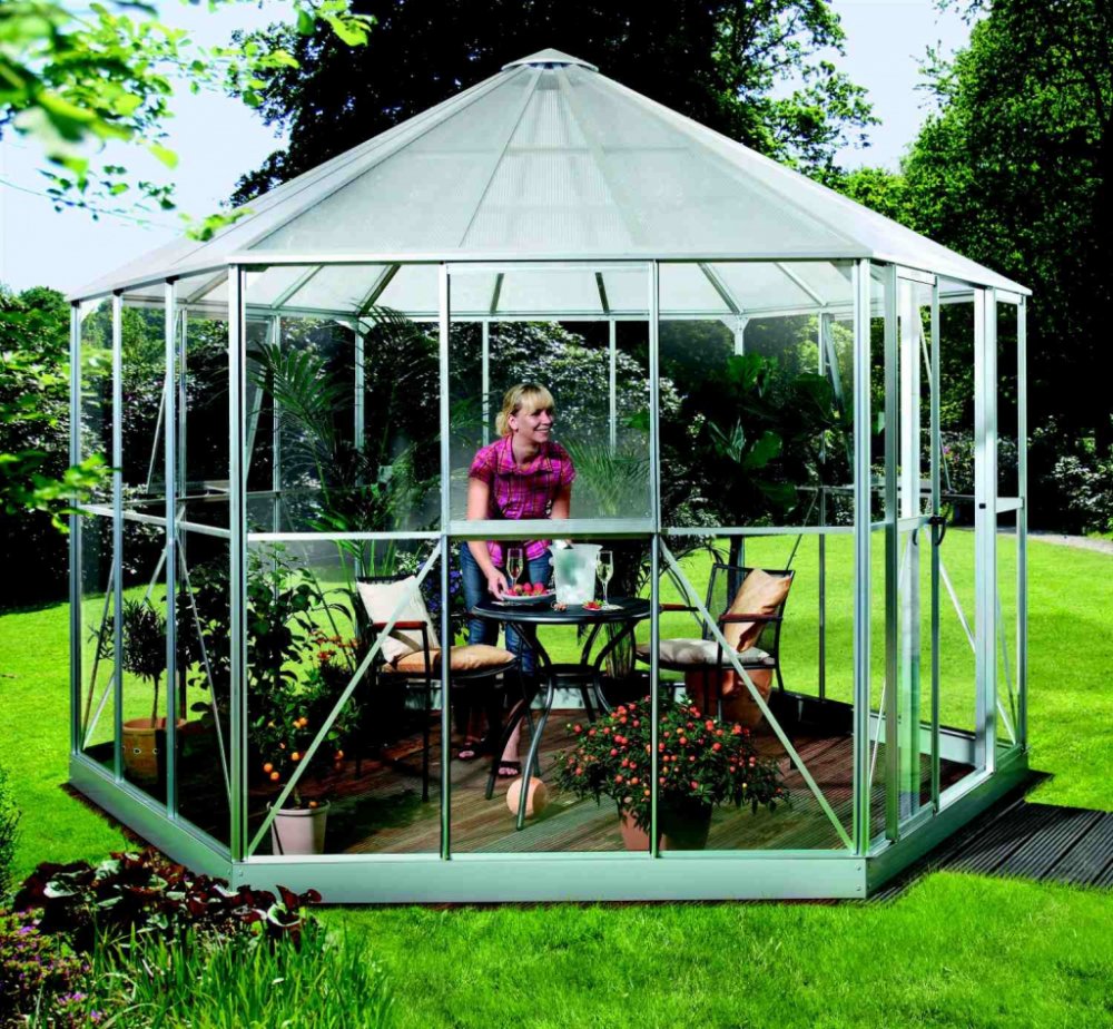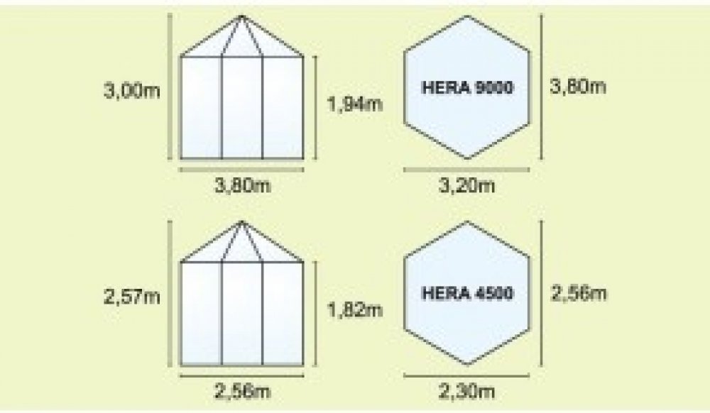 Pavilon HERA 9000 je zařazený do kategorie PREMIUM - pavilon je vyrobený značkovým výrobcem z Velké Británie. Pavilon je vyrobený z eloxovaných hliníkových profilů. Prosklení je z klasického čirého bezpečnostního skla síly 3 mm (stěny) a z nerozbitného komůrkového polykarbonátu 6 mm (střecha). Čiré sklo zajišťuje výbornou světelnou propustnost, takže do skleníku je krásně vidět ze všech stran a můžete se kochat barvami pěstovaných rostlin. Kalená verze skla navíc zajišťuje jeho naprostou bezpečnost - v případě rozbití se skleněná výplň roztříští na tisíce malých kousků, což zabrání případnému vážnému zranění. To je velmi důležitá vlastnost skleníku, kterou ocení především rodiče malých dětí pobíhajících po zahradě. Polykarbonát ve střeše - vysoce kvalitní dvoustěnný polykarbonát s UV filtrem (nekřehne, nežloutne) od evropského výrobce. Polykarbonát i sklo jsou do hliníkových profilů uchycené pomocí ocelových sponek. Součástí pavilonu je i pozinkovaná ocelová základna o výšce 6 cm. Na nerozbitnost polykarbonátu krupobitím poskytujeme prodlouženou záruku v délce 10 let.