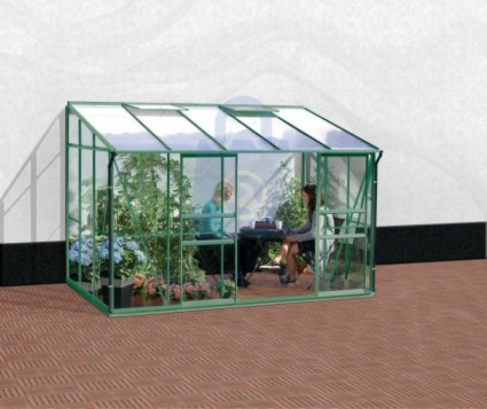 Vitavia 1.33 m2 1.93 m 0.69 m 1.84 m 1.51 m 18 kg se sedlovou střechou hliníkové zelené jednokřídlé bez základny polykarbonát 4 mm