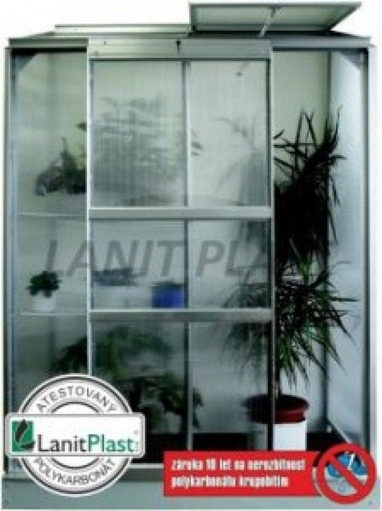 Vitavia 0.9 m2 0.69 m 0.69 m 1.84 m 1.51 m 16 kg se sedlovou střechou hliníkové stříbrné jednokřídlé bez základny polykarbonát 4 mm