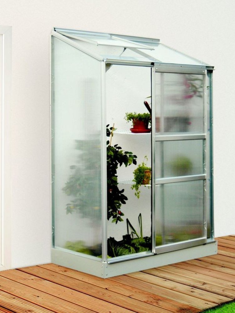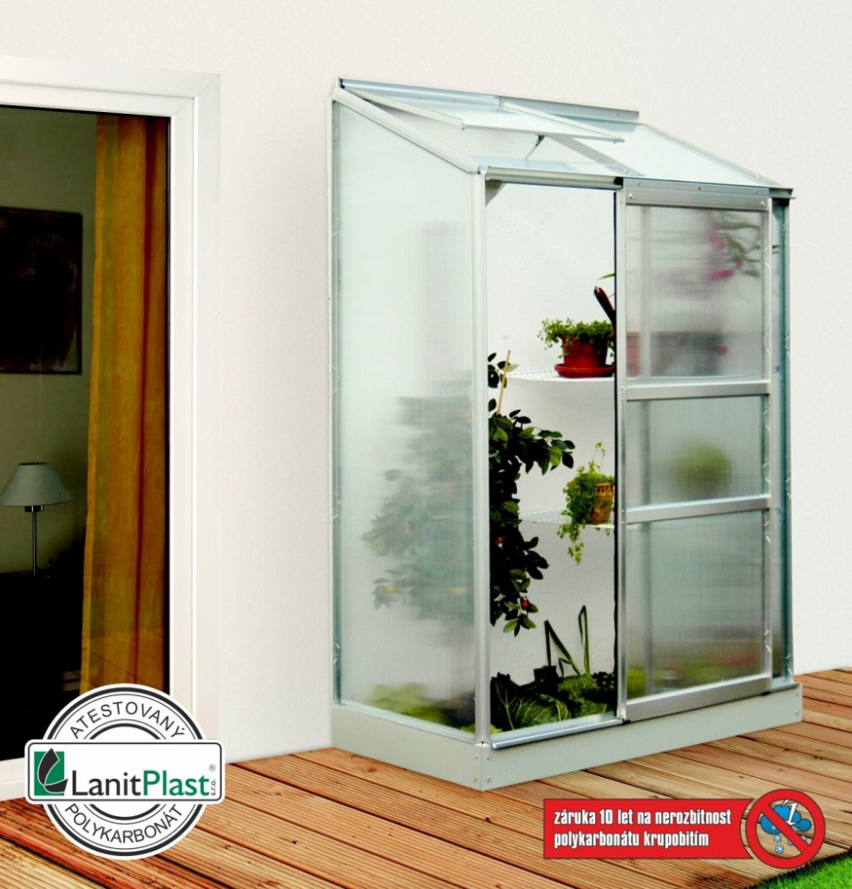 Skleník je určen k montáži ke zdi – zadní stěna není součástí konstrukce.