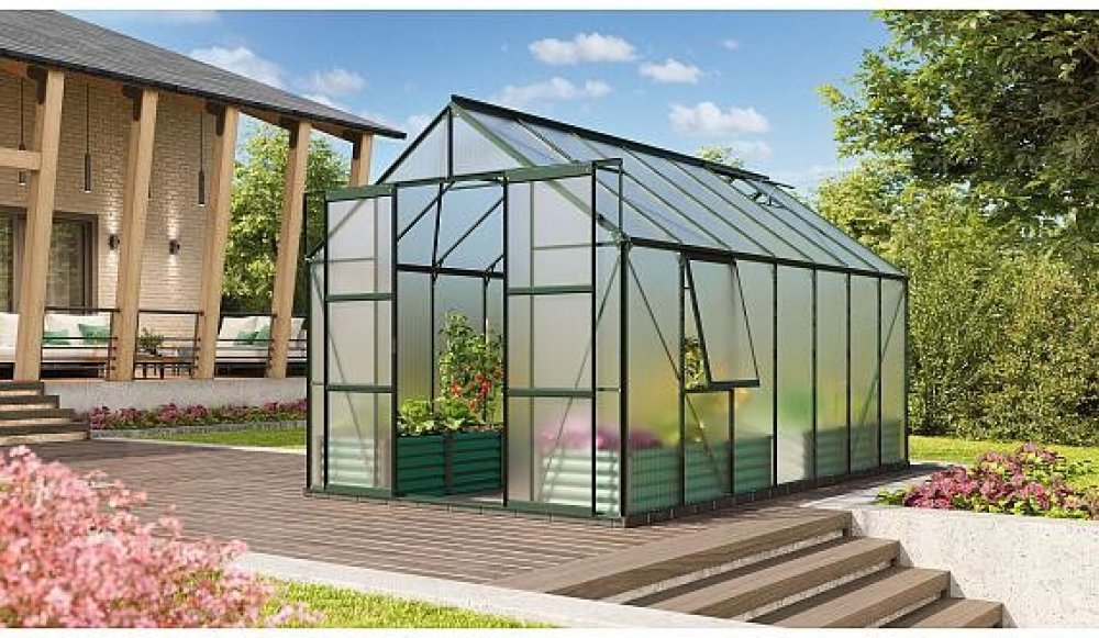 Vitavia 11.44 m2 2.57 m 4.45 m 2.46 m 1.91 m 109 kg se sedlovou střechou hliníkové zelené dvoukřídlé bez základny polykarbonát 4 mm