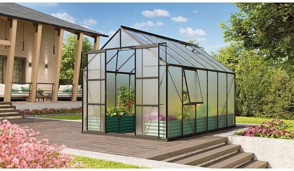Vitavia 9.84 m2 2.57 m 3.83 m 2.46 m 1.91 m 32 kg se sedlovou střechou hliníkové černé dvoukřídlé polykarbonát 6 mm