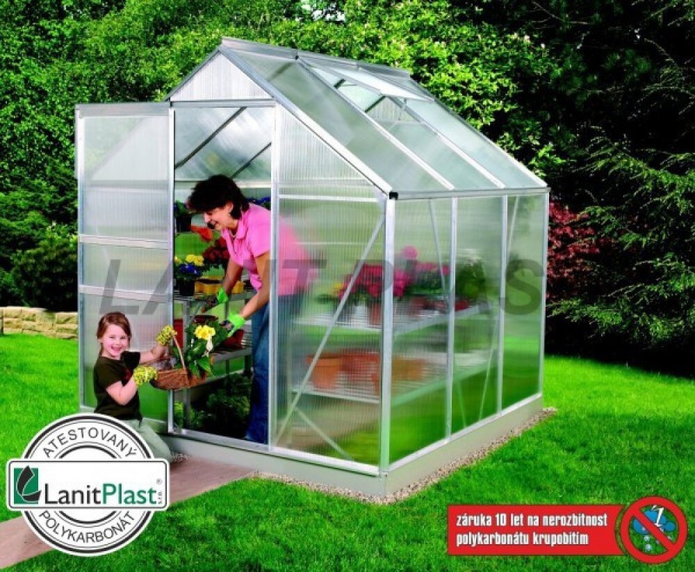 Polykarbonát - velmi kvalitní dvoustěnný polykarbonát s UV filtrem (nekřehne, nežloutne). Z důvodu zajištění maximální kvality prosklení tohoto modelu skleníku je prosklení vyrobeno firmou LANIT PLAST, s.r.o. z komůrkového polykarbonátu Marlon (výrobce Brett Martin - Velká Británie) nebo z polykarbonátu Sunlite (výrobce Palram Europe - Velká Británie/Německo). Společnost LANIT PLAST, s.r.o. je od roku 1999 jedním z největších oficiálních dovozců polykarbonátu do ČR (jako regionální partner jejich výrobců) a disponuje proto vlastními technickými zkušebními protokoly z českých státem akreditovaných zkušeben. Jedná se tak o jedny z mála skleníků na českém trhu, které jsou osazené kvalitním polykarbonátem s doložitelnou českou certifikací.