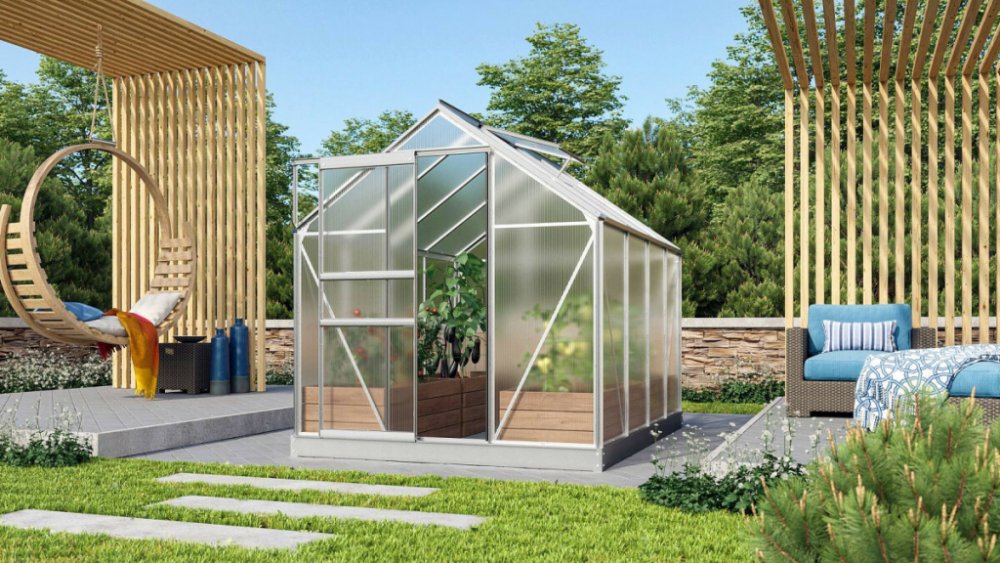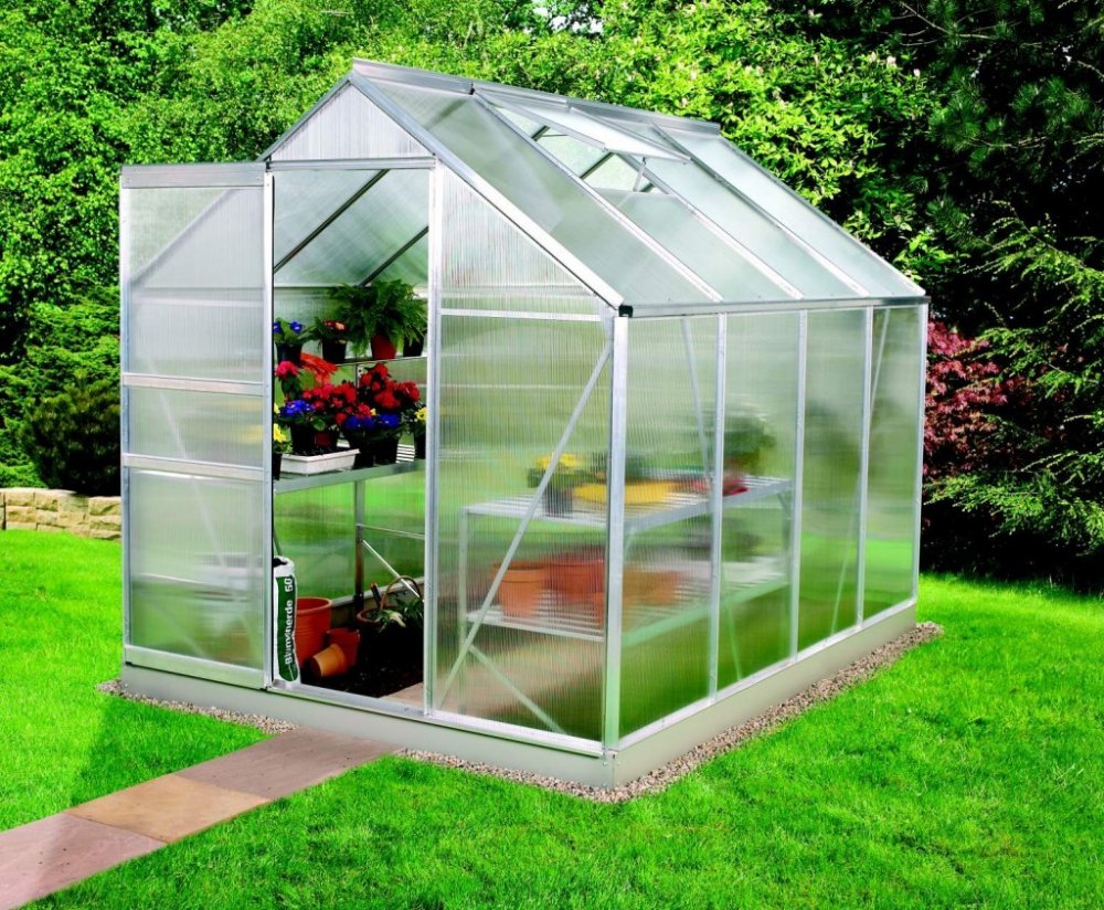 Skleník dodáváme ve dvou barvách konstrukce - kovově stříbrná (eloxovaný hliník) nebo v zeleném laku.