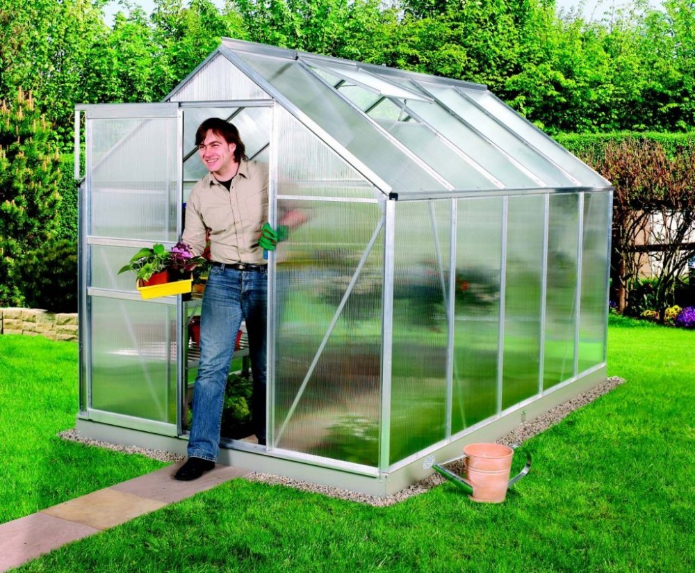 Obsahem balení jsou jednokřídlé posuvné dveře (š x v otvoru = 61 x 161 cm), AL profily, prosklení, 2x střešní ventilační okénko s manuálním otevíráním, veškerý spojovací materiál. Skleník lze postavit např. na zděnou podezdívku nebo na základnu z pozinkovaného plechu. Při stavbě bez podezdívky dokoupení základny jednoznačně doporučujeme. Ke skleníku je možné dokoupit řadu nadstandardního příslušenství - poličky, regály, další větrací střešní i boční okénka, automatické otvírače k těmto okénkům, okapové sady, teploměry, vlhkoměry, zavlažovací zařízení, elektrické odporové vytápění půdy.