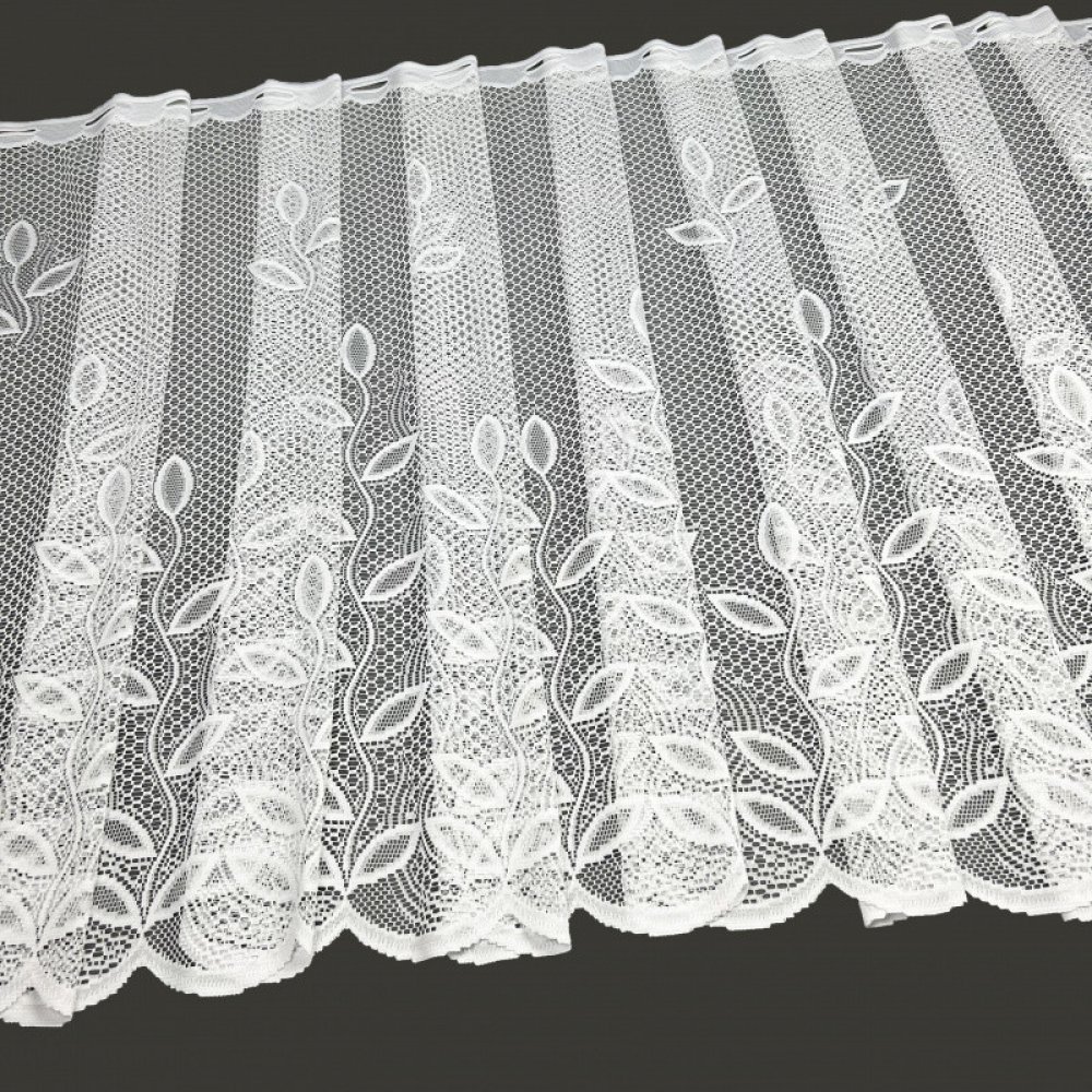 Vitrážová žakárová záclona v bílé barvě se vzorem.