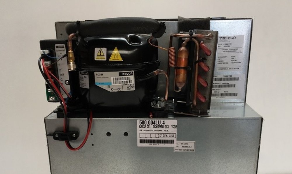 O chlazení se stará hermeticky uzavřený kompresor SECOP BD35F (dříve známý pod značkou Danfoss), vybavený 12/24 VDC napájecí jednotkou s ochranou proti hlubokému vybití baterie.
