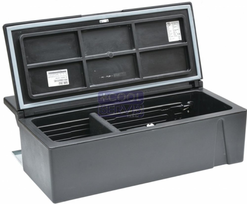 V lednici je použit hermeticky uzavřený, osvědčený, kompresor SECOP (dříve značka Danfoss) BD35F. Jeho součástí je automatická napájecí elektronika SECOP 12/24V s integrovanou ochranou proti vybití baterie.