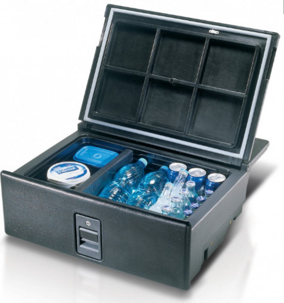 Kompresorová lednička speciálně a továrně vytvořena pro vozidla VOLVO FH3. Ledničky V26 mají nejnovější kompresory BD35F firmy Danfoss s bezpečnostními systémy proti úpadku napětí, které jsou charakteristické minimální spotřebou energie, nízkou hlučností a mají automatický přepínač 12/24 volt. Využití přehrádky uvnitř ledničky umožnilo získání dvou různých teplot. Klika kterou je vidět na fotce ne...