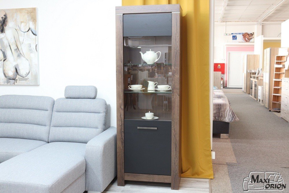 Vitína BALIN REG1W je praktická a elegantní zároveň. Vyrobená je v příjemném dekoru dřeva modřín sibiu zlatý. Úložný prostor vitríny se skládá z polic - plných a prosklených. Prosklené police skvěle doplní LED osvětlení , které je již v ceně tohoto nábytku. Vyrobeno z lamina, které se velice snadno udržuje. Dodáváno v demontovaném stavu s návodem na sestavení. Doporučujeme kombinovat s ostatním ná...