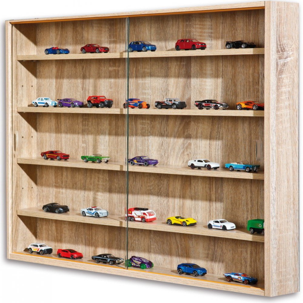 Vitrína COLLECTIZIONI v provedení dub, dvě posuvná bezpečnostní skla uchrání vaše poklady před prachem.
