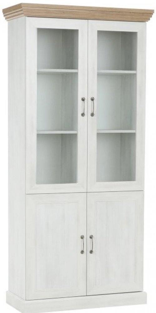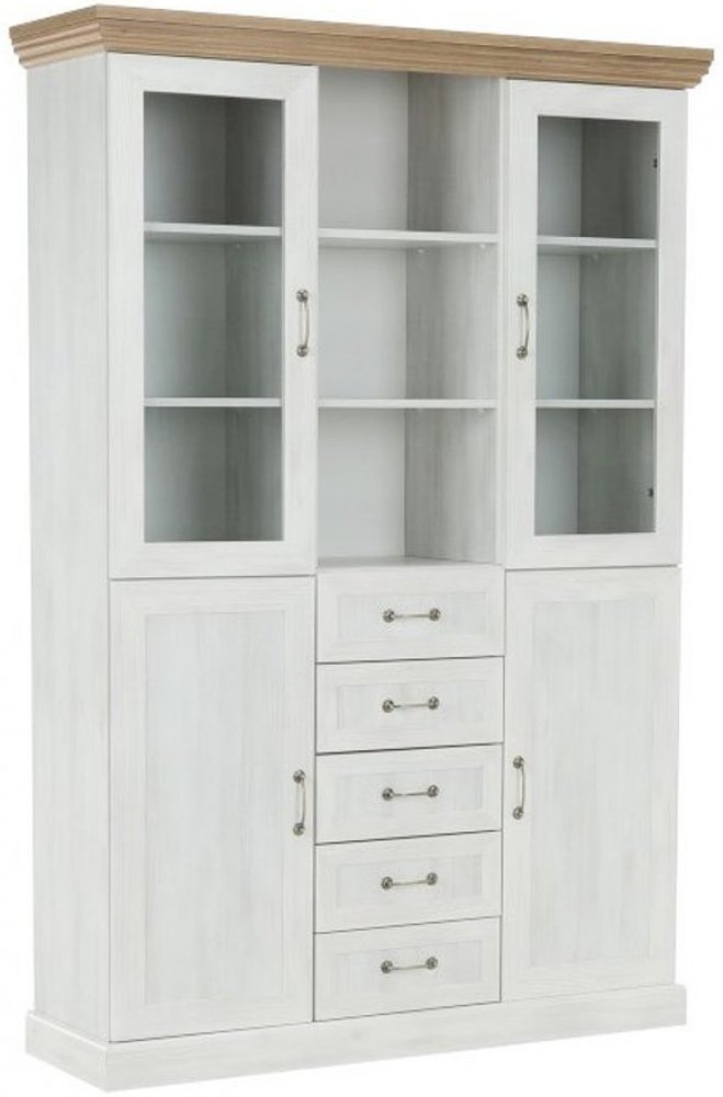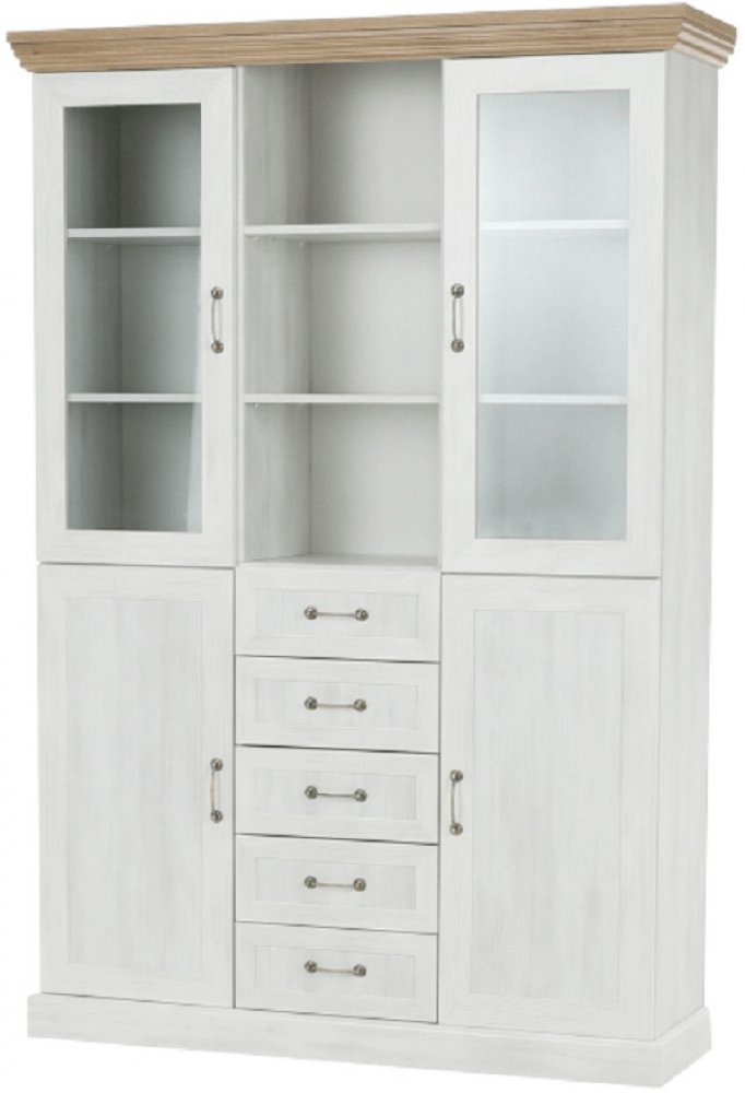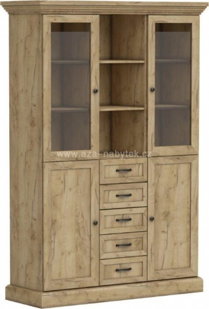 Provedení: Čtyřdveřová vitrína - dvoje plná a dvoje prosklená dvířka - s policemi a 5 zásuvkami, z kompletu ROYAL.