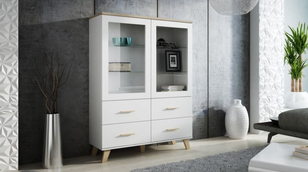 spodní část vitríny tvoří 4 zásuvky