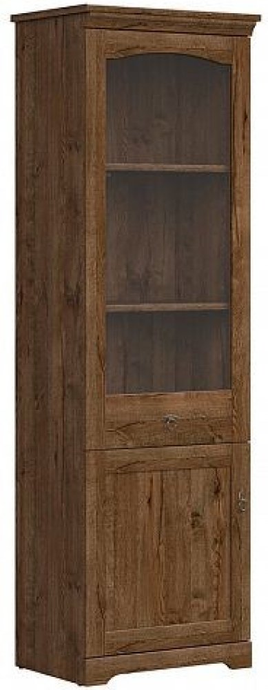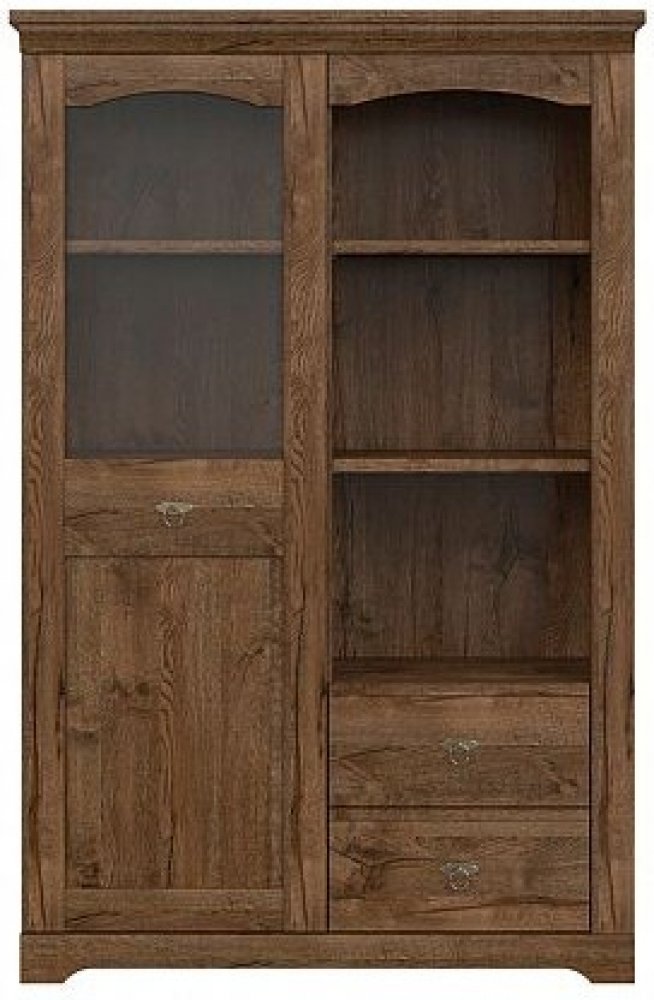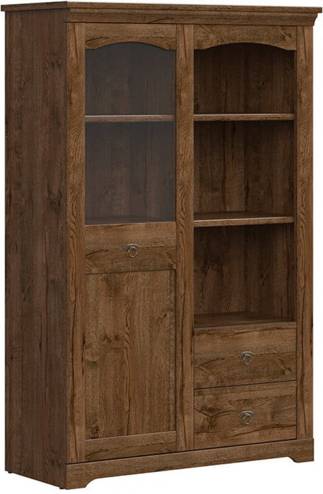 Vitrínu Patras REG1W2S si oblíbí především milovníci interiéru, kteří rádi kombinují tradiční design s moderním. Tato vitrína je zhotovena v tmavém dekoru dřeva a to v barevném provedení dub april . Vitrína Patras je rozdělena na dvě části. Policovou se skleněným průhledem a otevřenou policovou se zásuvkami ve spodní části. Možno dokoupit LED osvětlení (viz související zboží) , které krásně v pr...