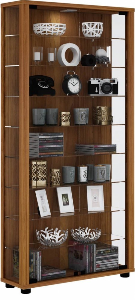 Polovysoká elegantní vitrína LUMO Maxi se dveřmi, bočnicemi a 8 variabilními policemi z čirého tvrzeného bezpečnostního skla. Rám i stabilní zadní stěna jsou vyrobeny z kvalitní repliky dřeva. K dispozici také ve variantě s LED osvětlením, díky kterému ještě více vyniknou vaše sbírky či dekorační předměty. Vitríny VCM mají mimořádně vysoký standard, který kromě trvalé a spolehlivé kvality zahrnuje také kompletní montážní materiál. Materiál: kvalitní imitace dřeva, tvrzené bezpečnostní sklo Rozměry: 118 x 59 x 18 cm VCM Vitrína Lumo Maxi, s LED osvětlením, ořech 763426 za skvělou cenu.