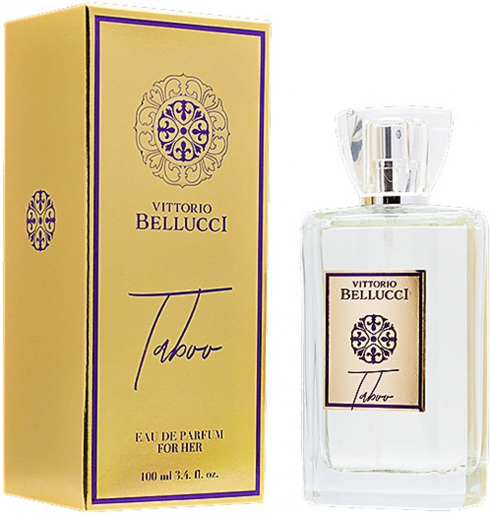 Vittorio Bellucci 100 ml dámské parfémované vody květinové vřelé a útulné Taboo For Woman bergamot, kokos, zázvor pomerančový květ, tuberóza, ylang-ylang ambra, cedrové dřevo, karamel, muskus, vetiver zimní s ambrou, s bergamotem, s tuberózou Vittorio Bellucci klasické TSA kompatibilní (≤100ml) rozprašovač 360 g